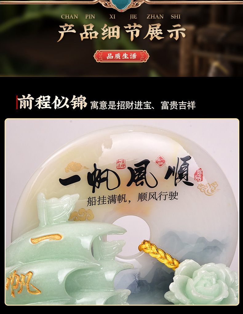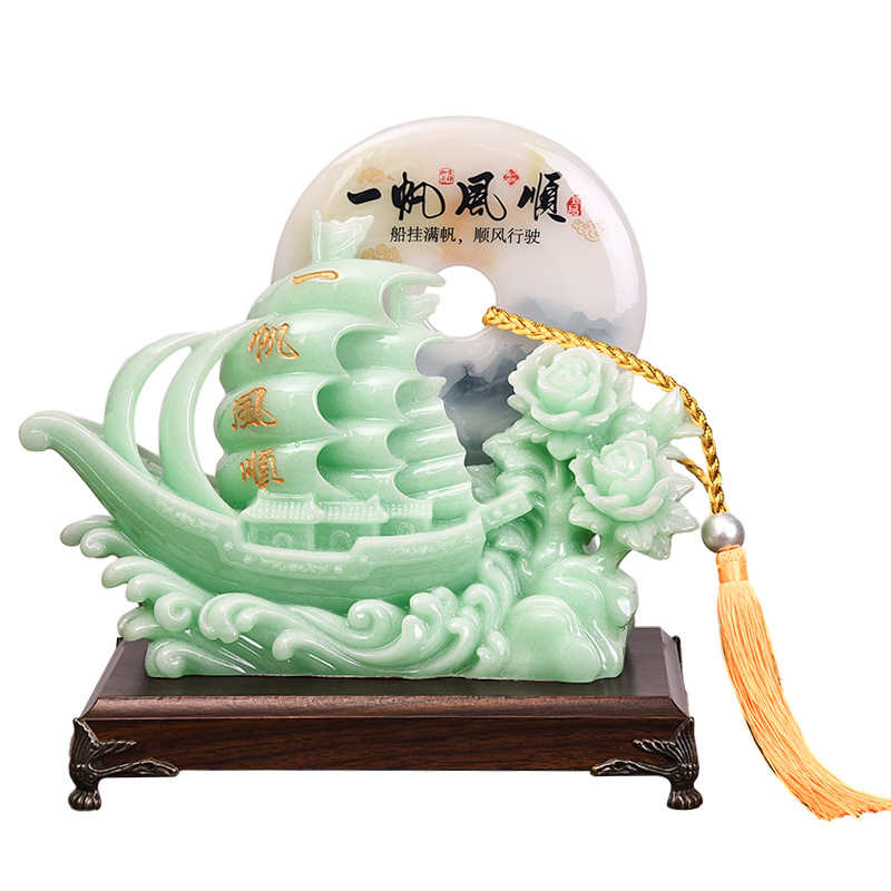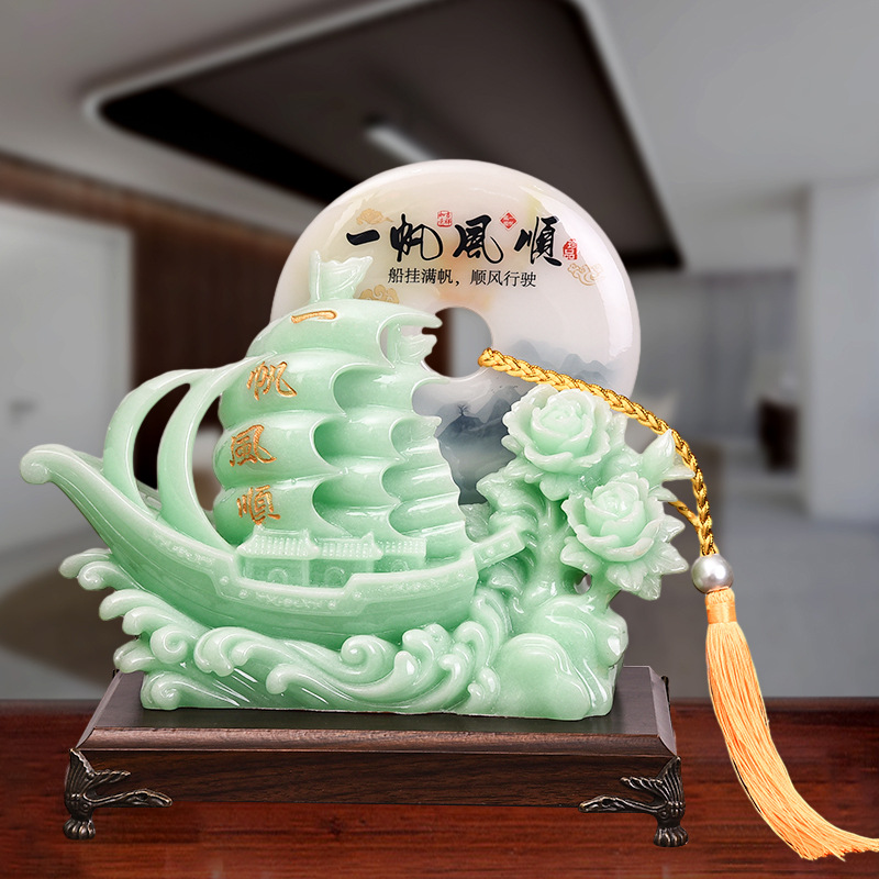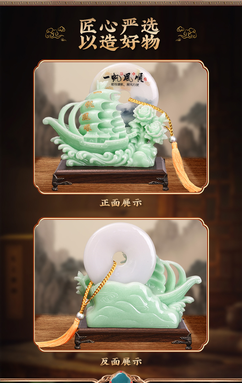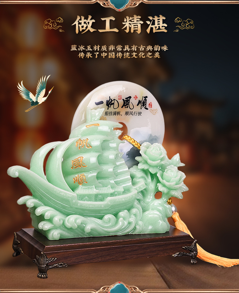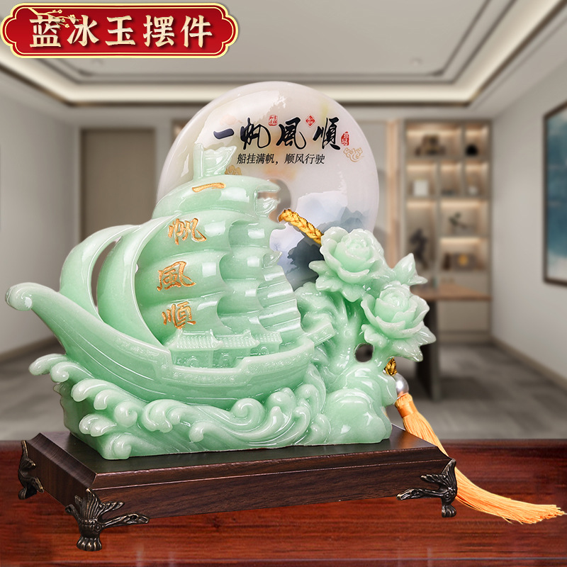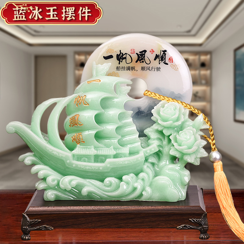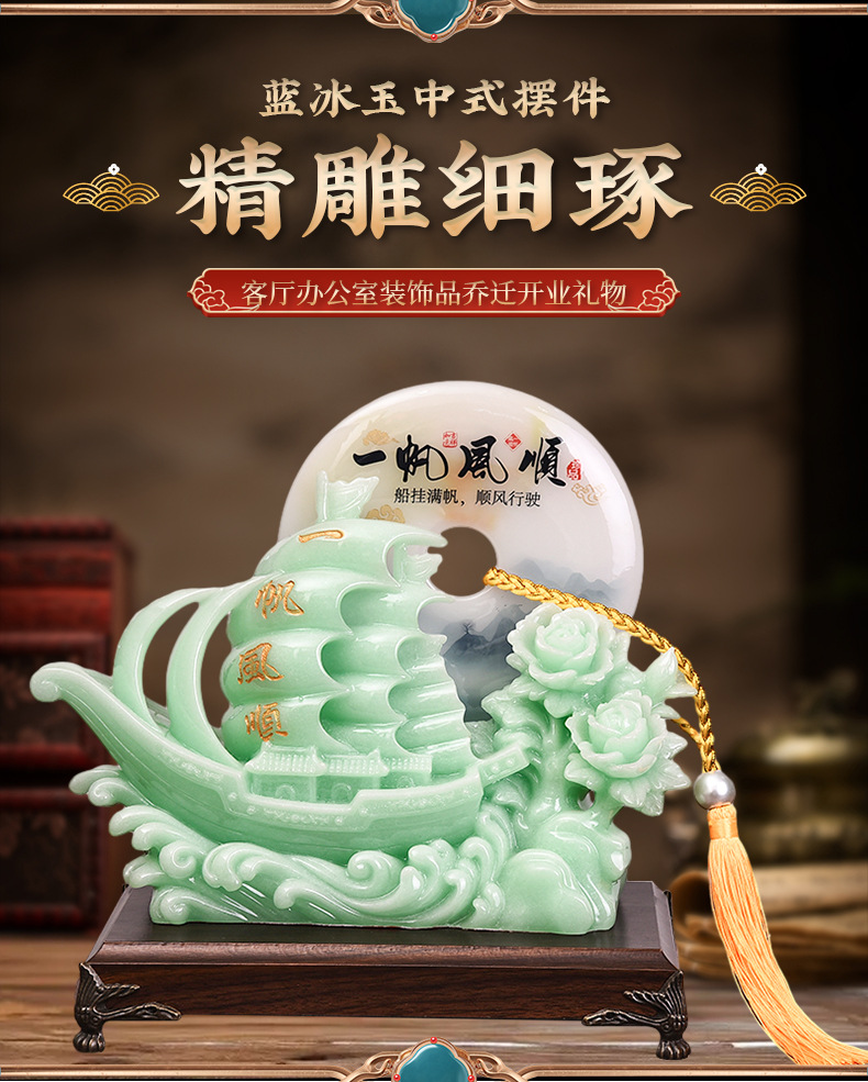 一帆风顺帆船平安扣摆件蓝冰玉工艺品摆设开业乔迁礼品摆台装饰品 English | 投诉
