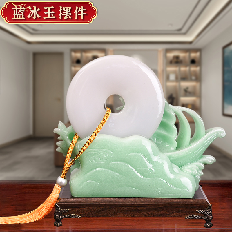 一帆风顺帆船平安扣摆件蓝冰玉工艺品摆设开业乔迁礼品摆台装饰品