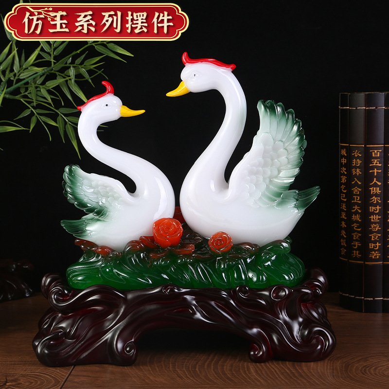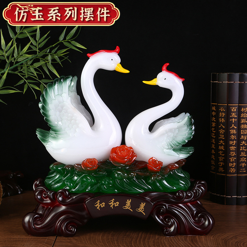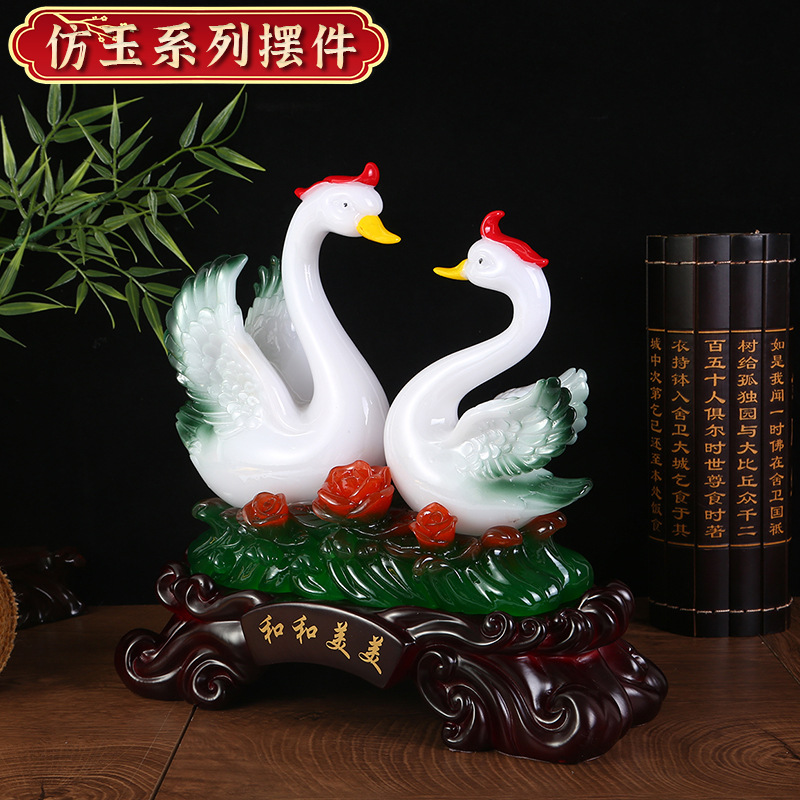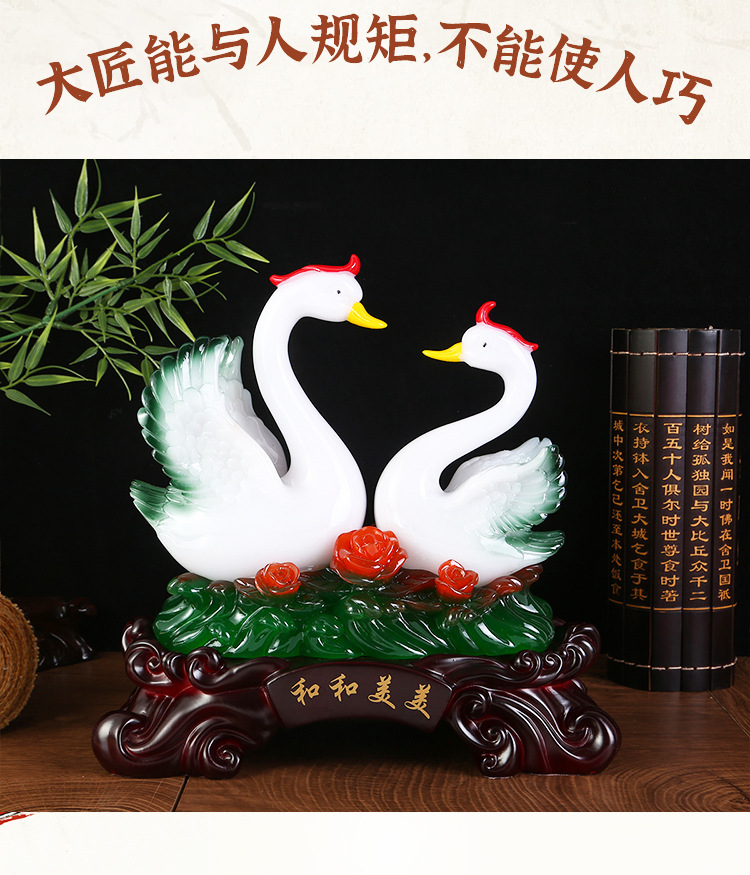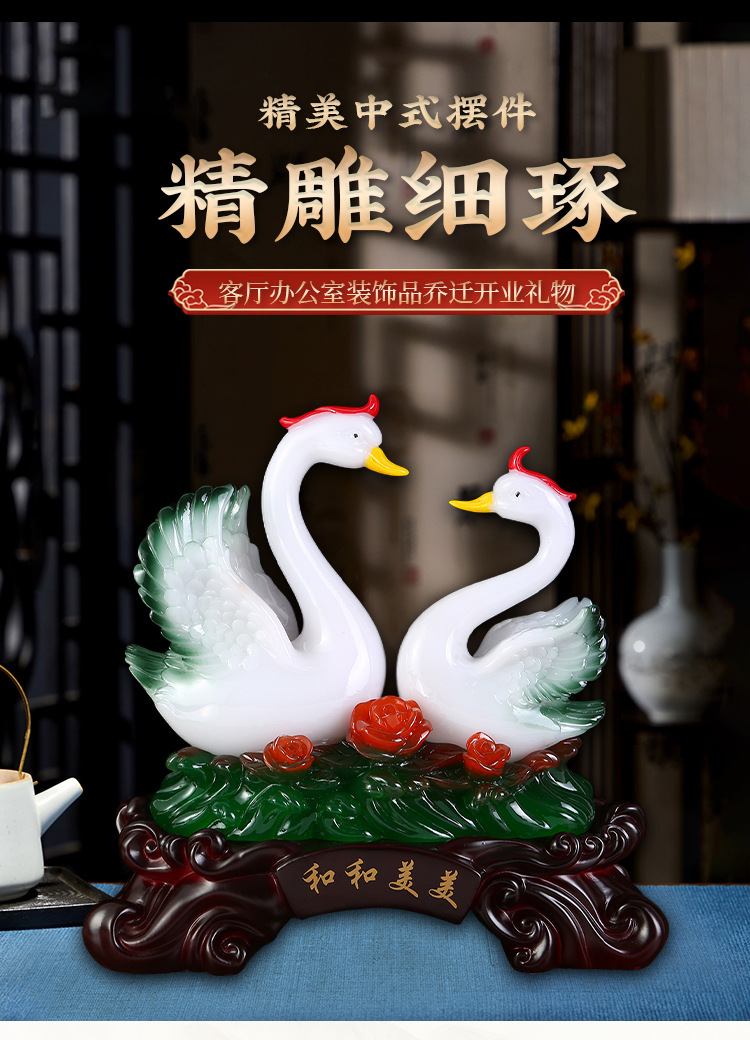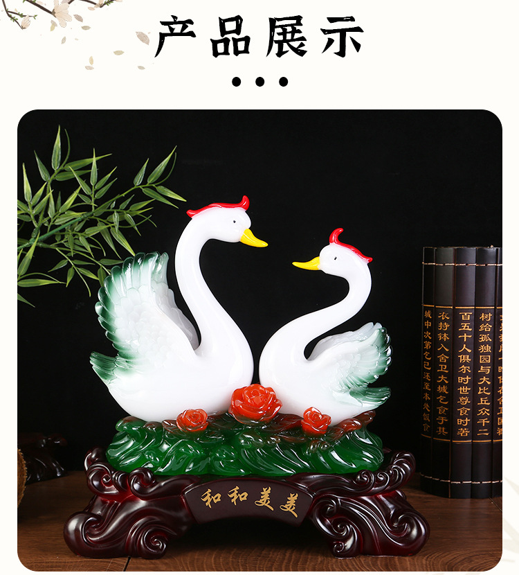 鸳鸯天鹅摆件树脂工艺品玉白菜摆件 创意家居装饰新婚礼品摆设 English | 投诉