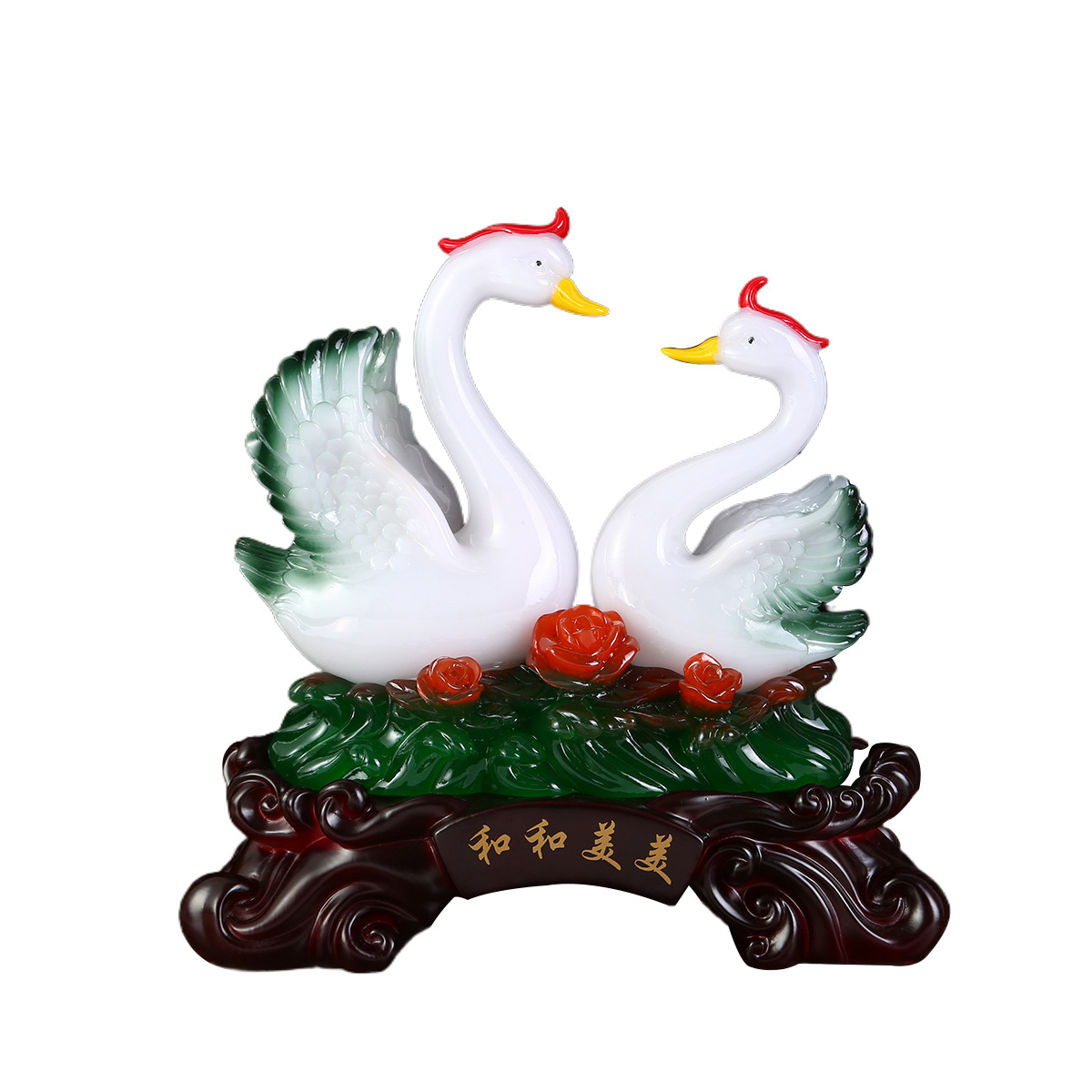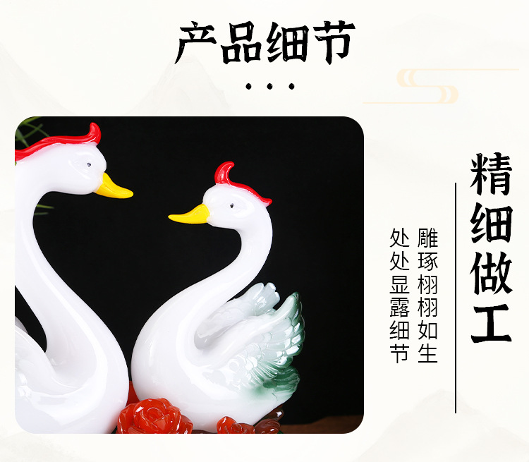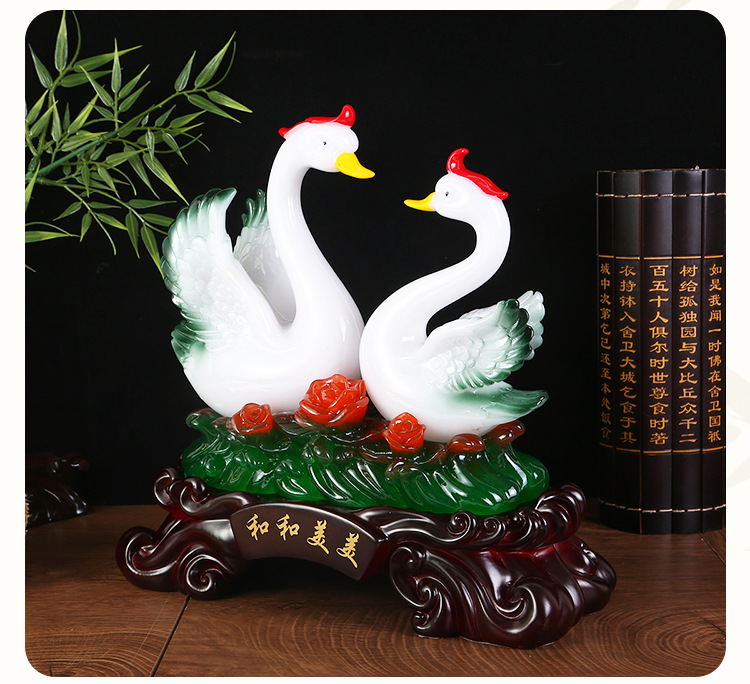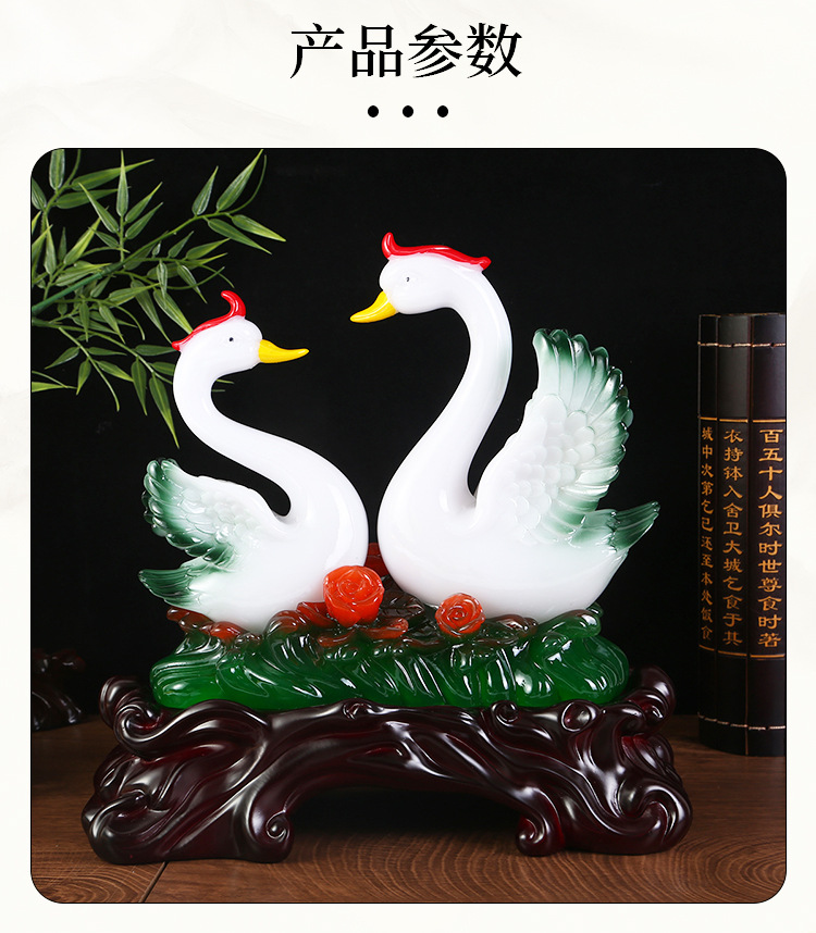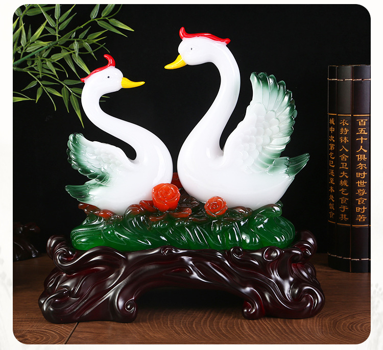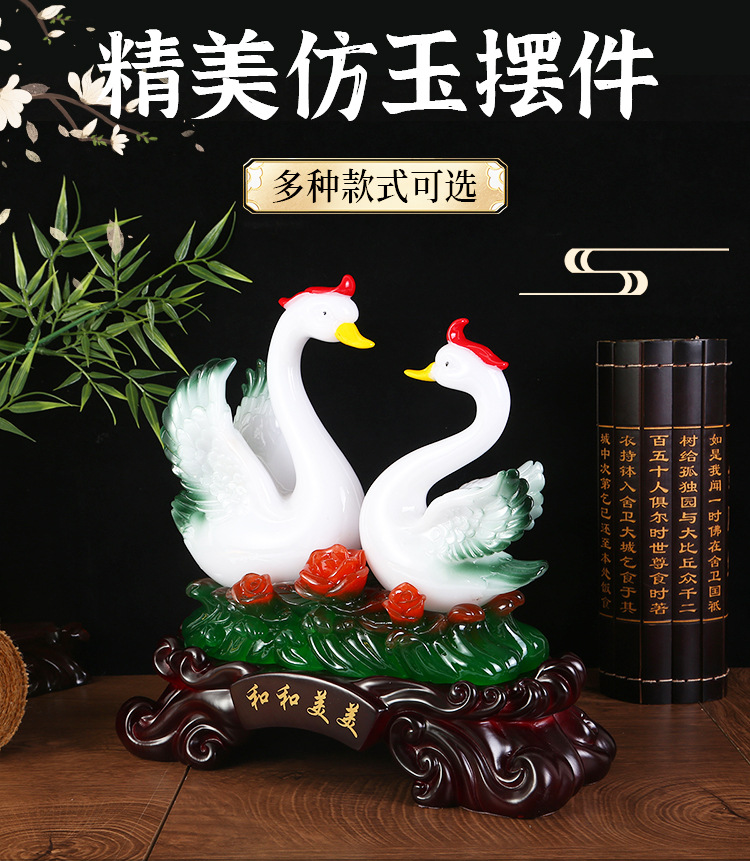 鸳鸯天鹅摆件树脂工艺品玉白菜摆件 创意家居装饰新婚礼品摆设 English | 投诉