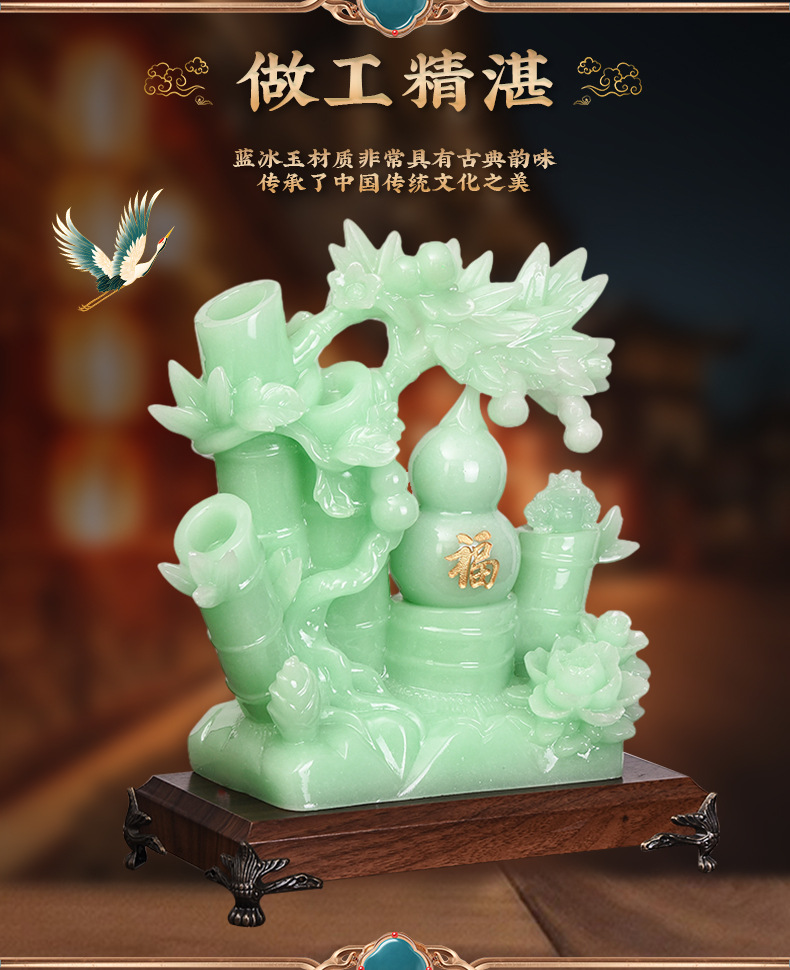 新中式节节高葫芦摆件蓝冰玉树脂工艺品摆设家居玄关书房摆设批发 English | 投诉
