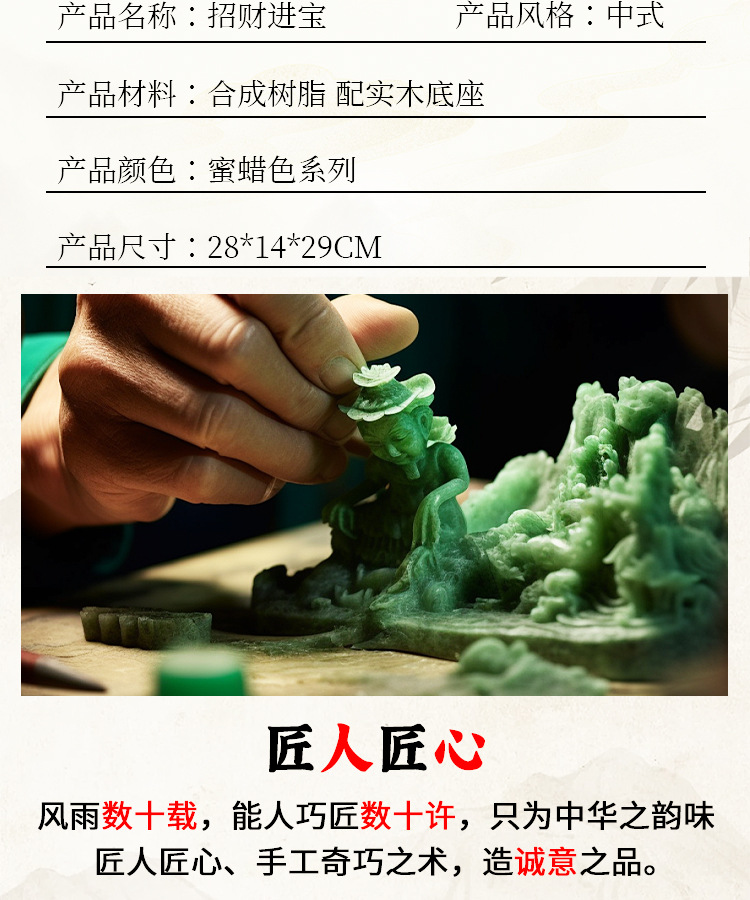 材质: 树脂 类别: 动物 风格: 中式 品牌: 联友工艺品 包装: 纸盒包装 货号: WY-1356 是否专利货源: 否 颜色: 招财进宝 尺寸: 28*14*29 是否属于礼品: 否 是否IP授权: 否