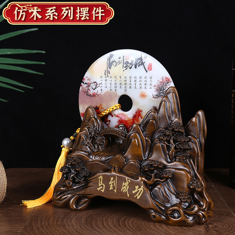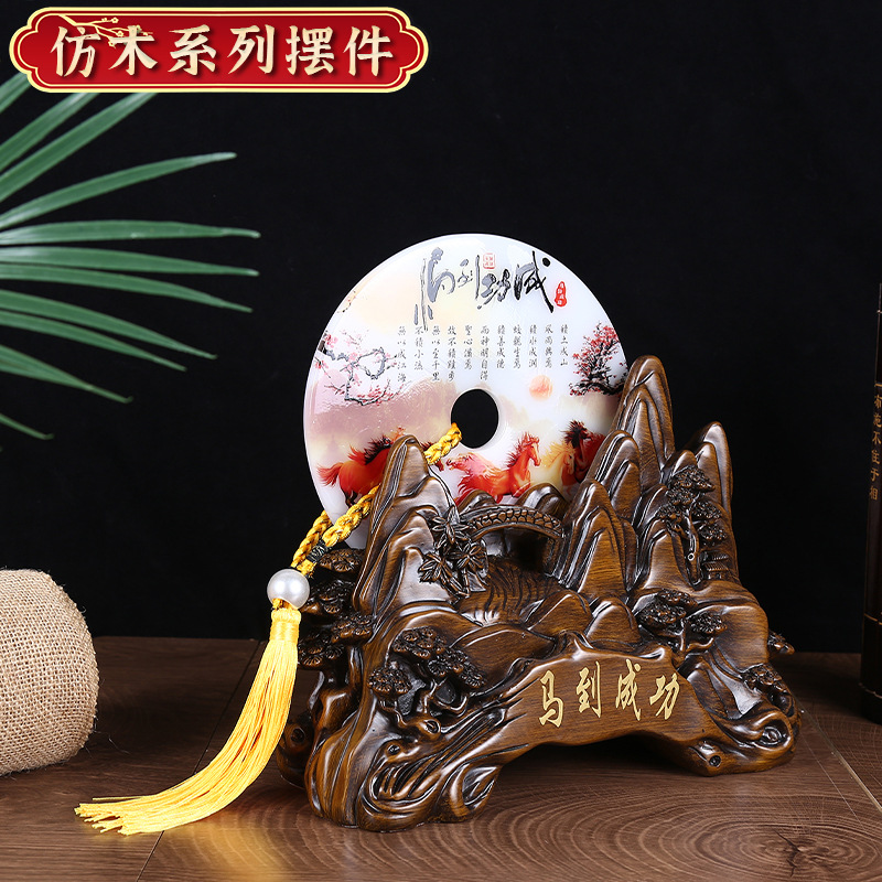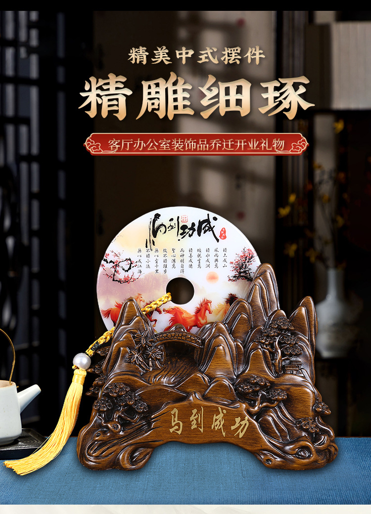 仿木雕马到功成摆件平安扣纳福摆件办公室玄关装饰纳福吉祥摆设