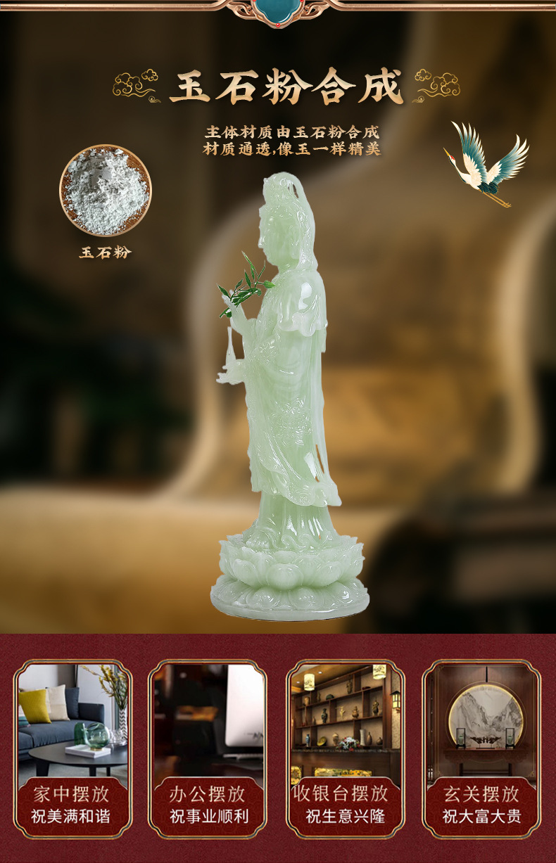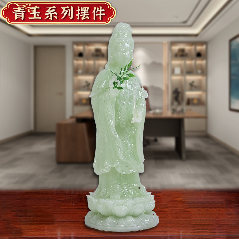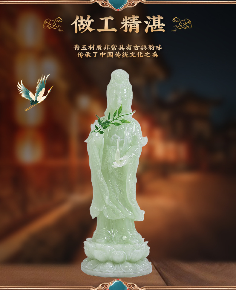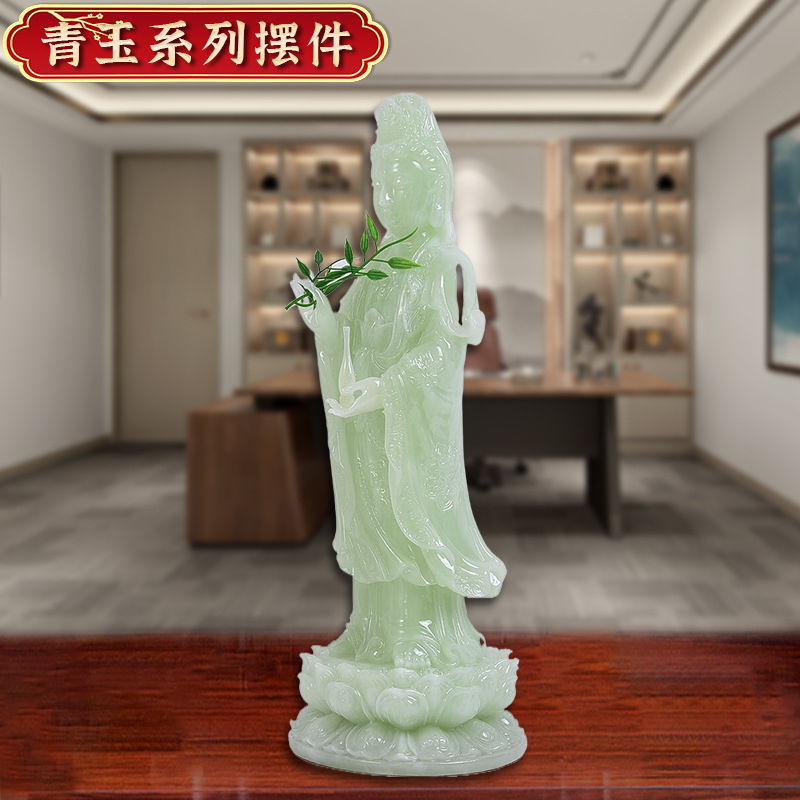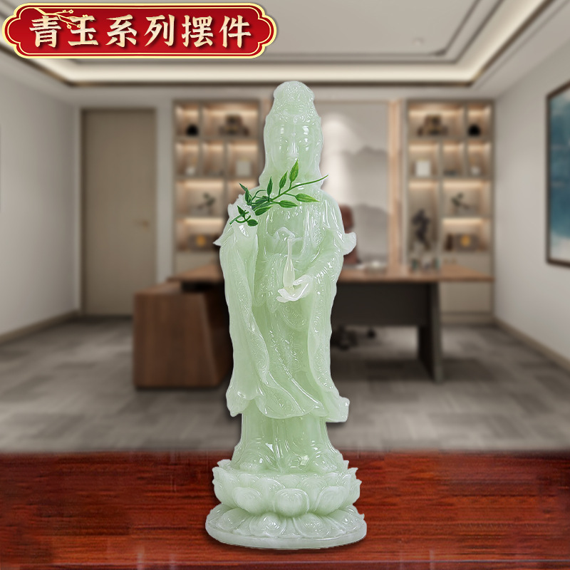厂家直供南海观音菩萨佛像摆件客厅家用站立神像仿玉石观世音菩萨 English | 投诉