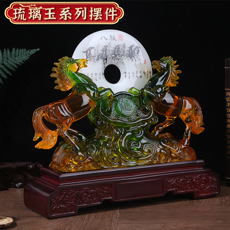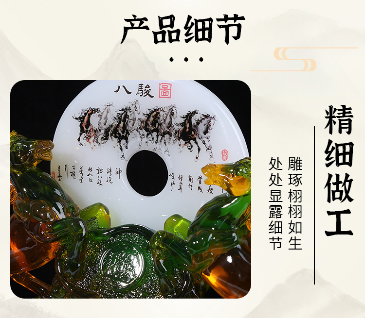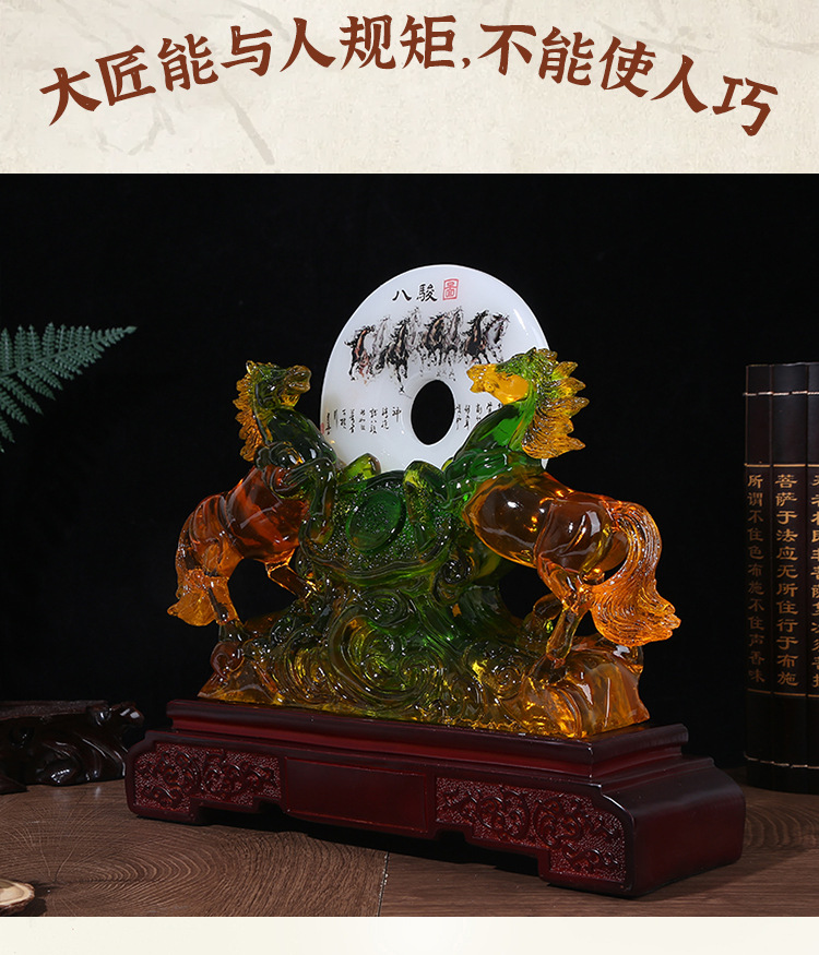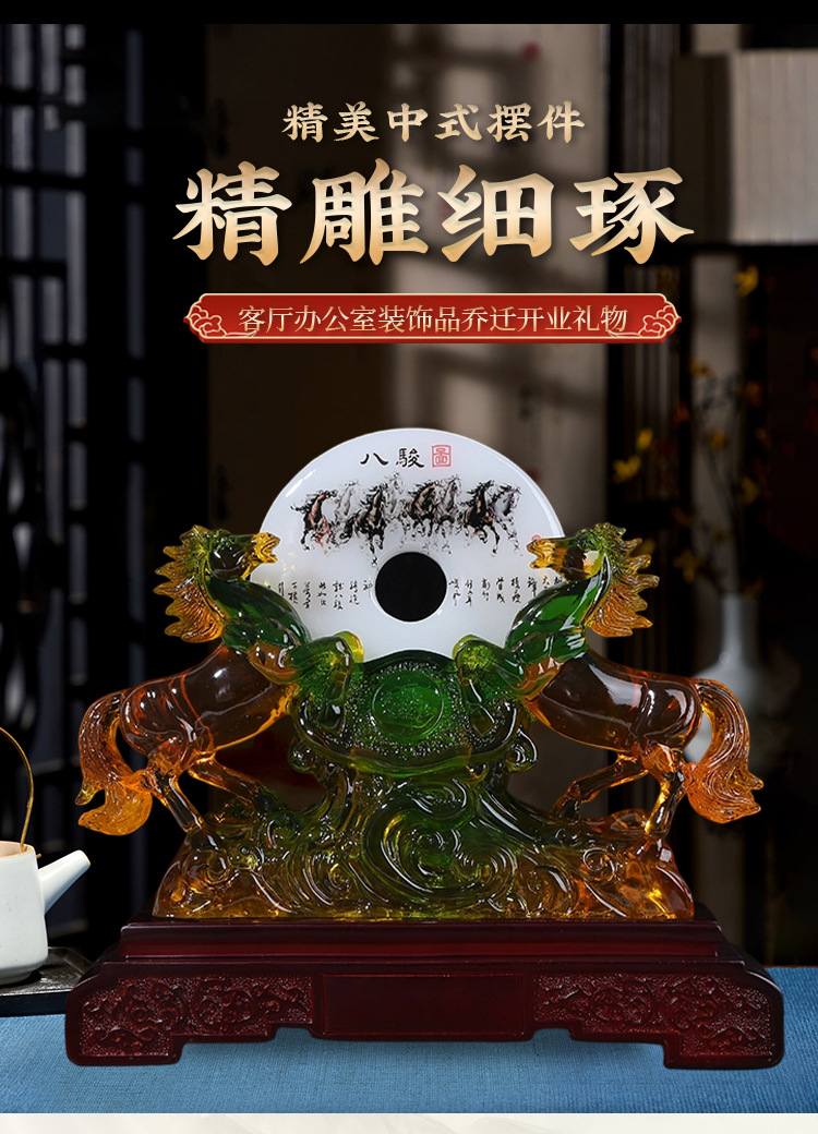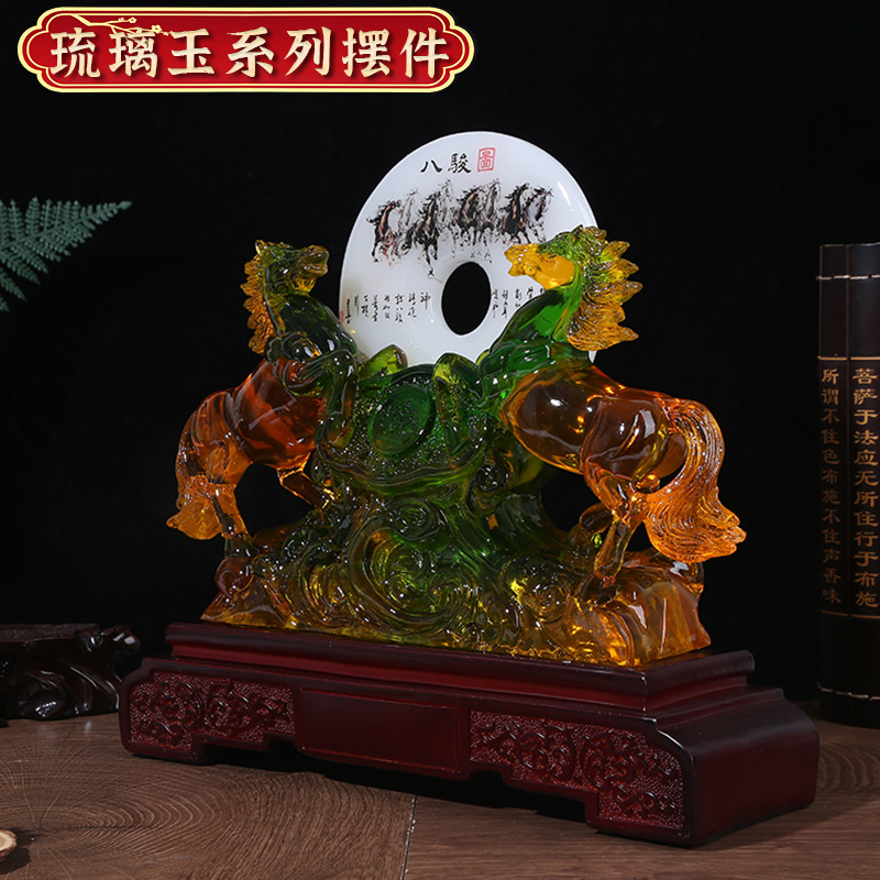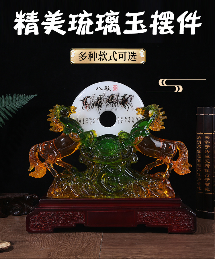 商务礼品琉璃玉双马八骏图摆件 马到成功家居装饰工艺品 工厂批发 English | 投诉