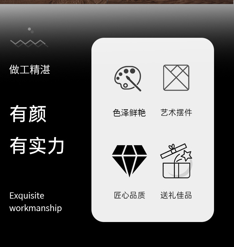 • 主营产品包括树脂工艺品(各类仿玉工艺品、婚庆摆件、商务礼品、家居摆件、公司致力坚持为客户推广品牌和传播企业文化礼品的战略方针,奔着以客户为导向,客户利润至上,服务至上,品质优越的服务宗旨.