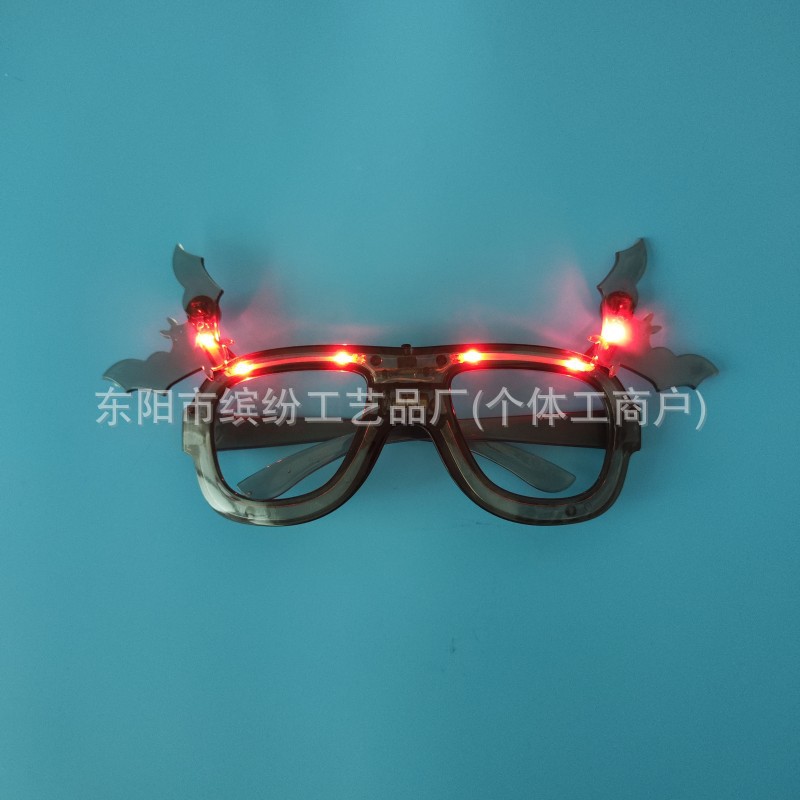 跨境万圣节眼镜LED发光万圣眼镜成人儿童派对蝙蝠搞怪饰品道具