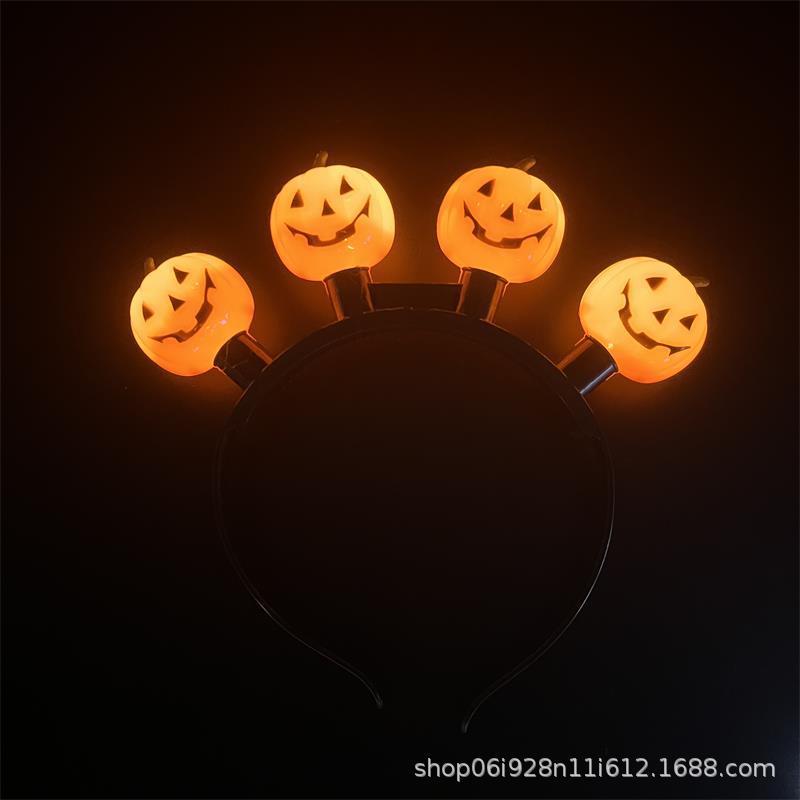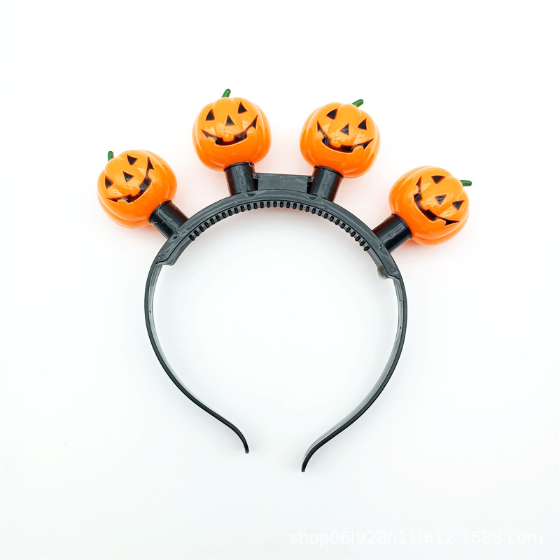 厂家批发直销万圣节四灯南瓜头扣 欧美节日发光头箍 派对道具闪光
