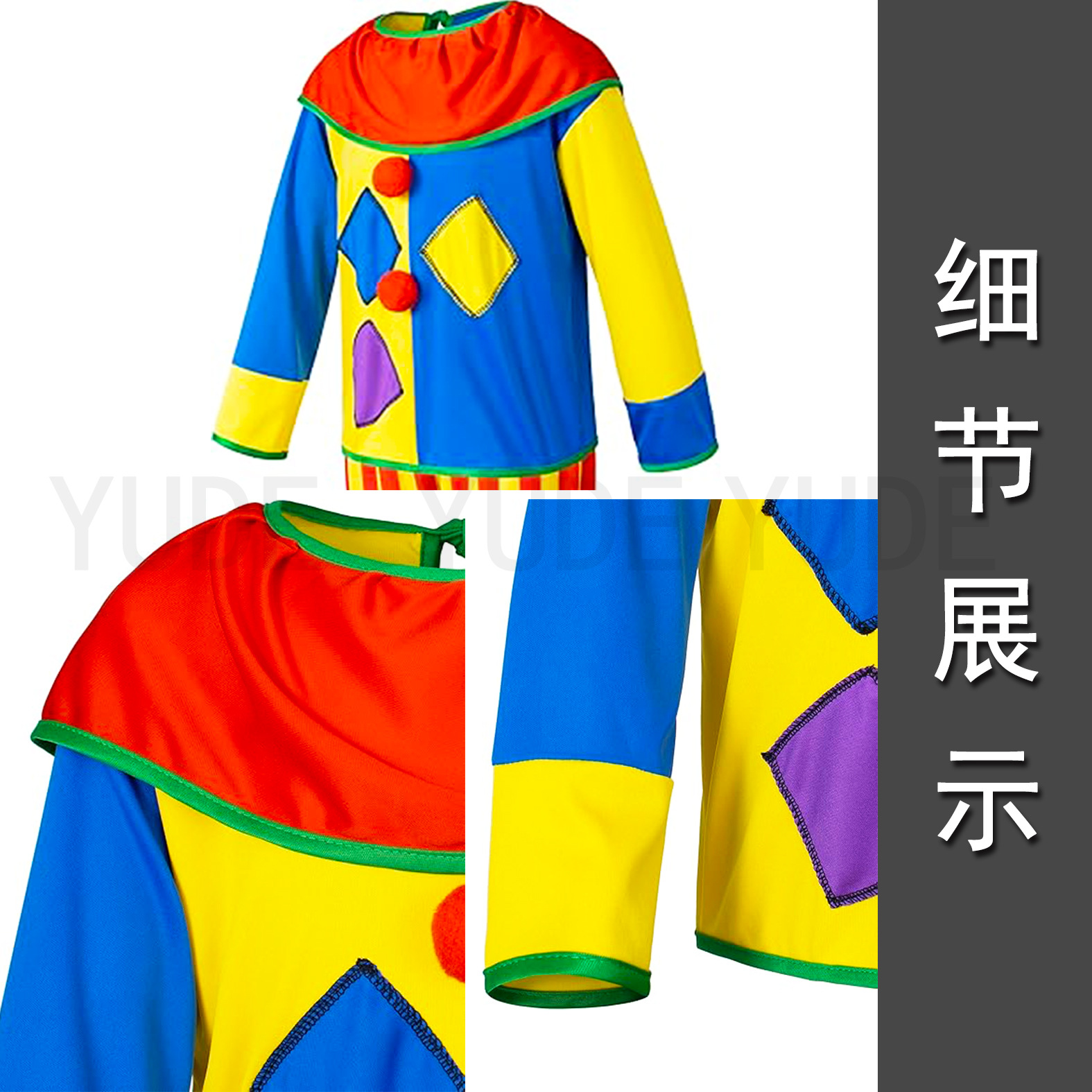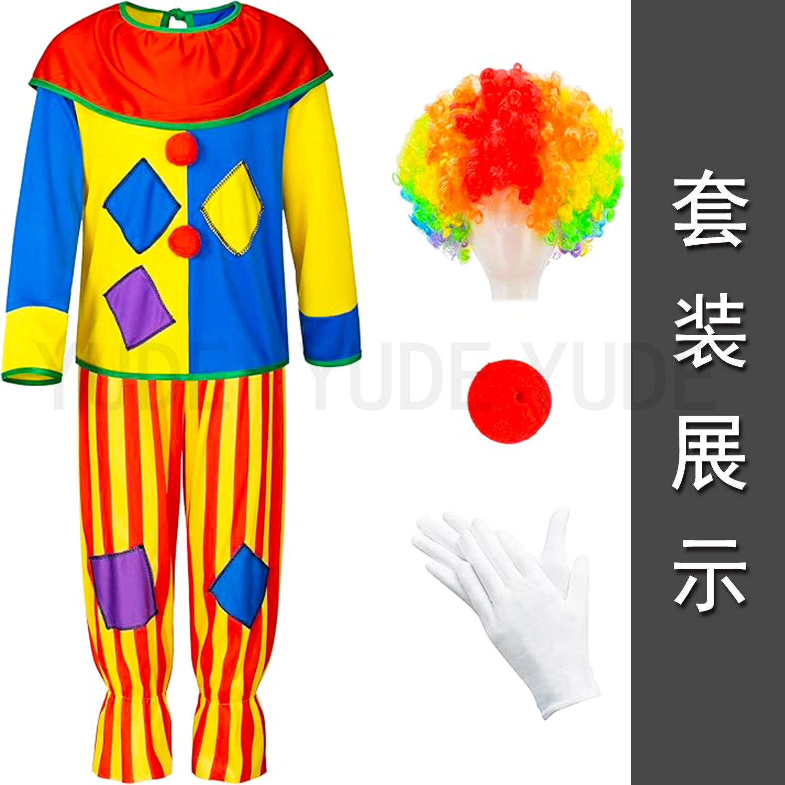 热卖万圣节5件套儿童小丑服装套装马戏团服装男孩配饰服装角色扮 English | 投诉