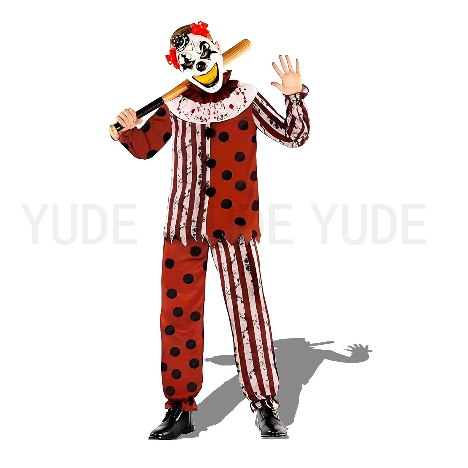 面料名称: 涤纶 主面料成分: 聚酯纤维 品牌: 其他 适用场合: 游戏动漫角色扮演 上市年份/季节: 2024年秋季 适用性别: 中性/男女均可 主面料成分2: 麻 货号: YD-2120 颜色: 花色,尺码表 尺码: S,M,L,XL 适合年龄: 18-24周岁 主题元素: 热门影视 主面料成分含量: 80%(含)-90%(不含) 跨境风格类型: 民族部落 断魂小丑: 杀手小丑 派对服饰: 小丑派对 是否跨境货源: 是 万圣节: 小丑恐怖服装 主面料成分2含量: 30%以下 主要下游销售地区1: 欧美 重量: 0.9 kg/件