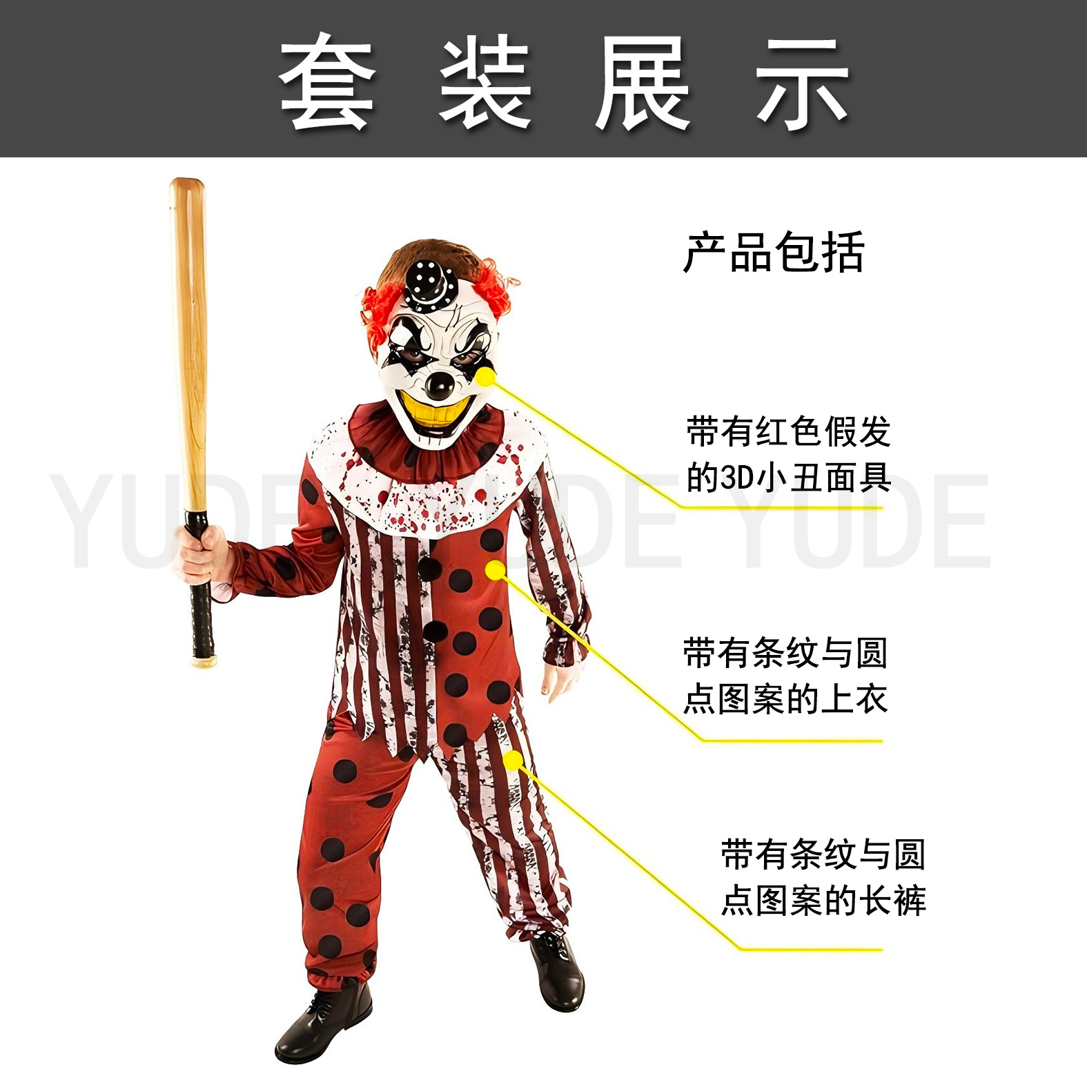 热卖万圣节儿童小丑套装马戏团服装男孩配饰极具恐怖感的杀手小丑 English | 投诉