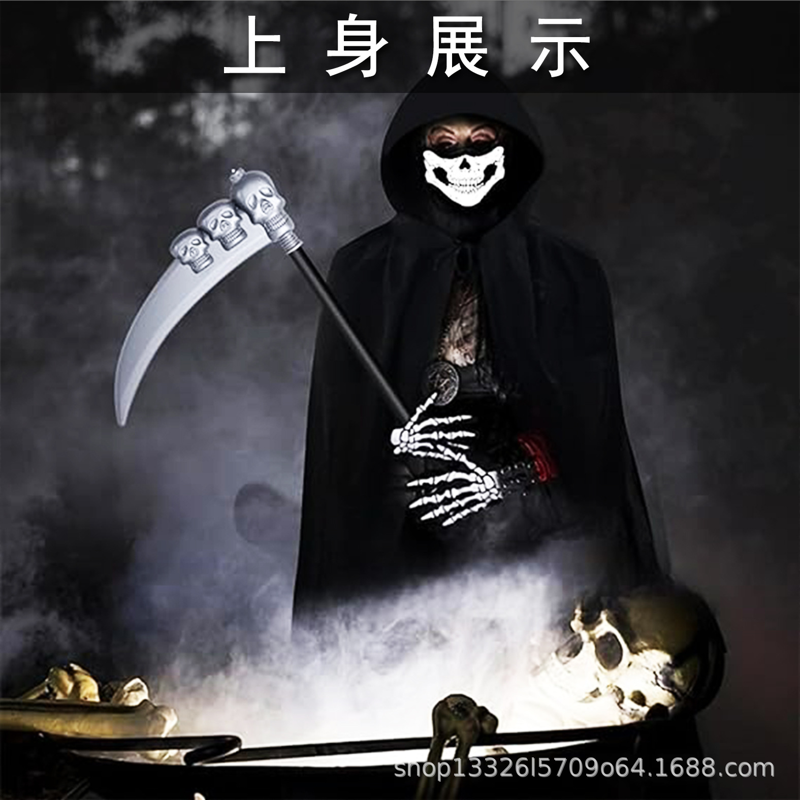 创意热卖新款万圣节cosplay幽灵死神舞会派对黑色服装套装 English | 投诉