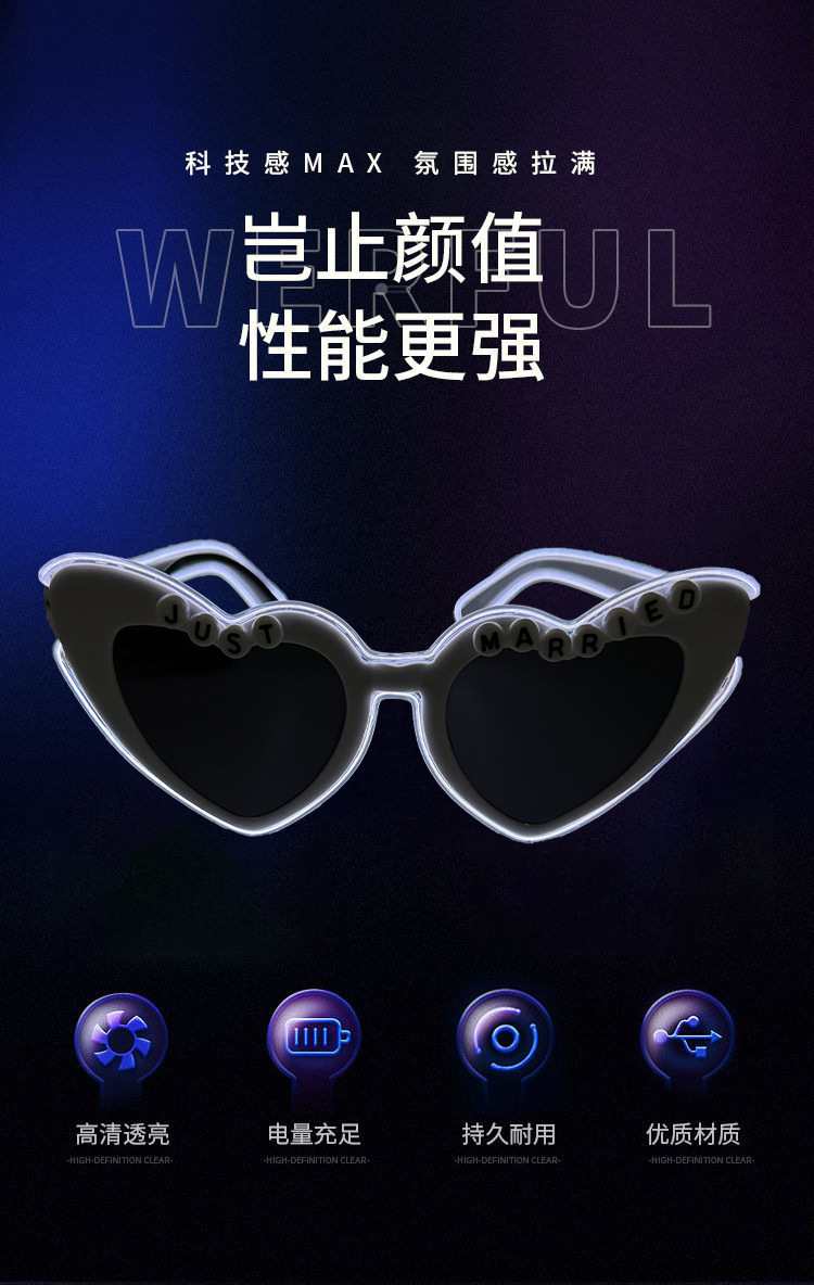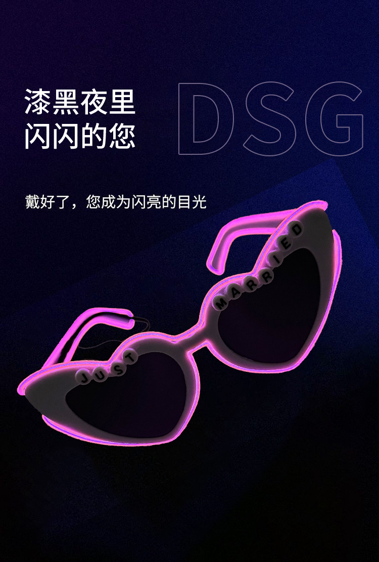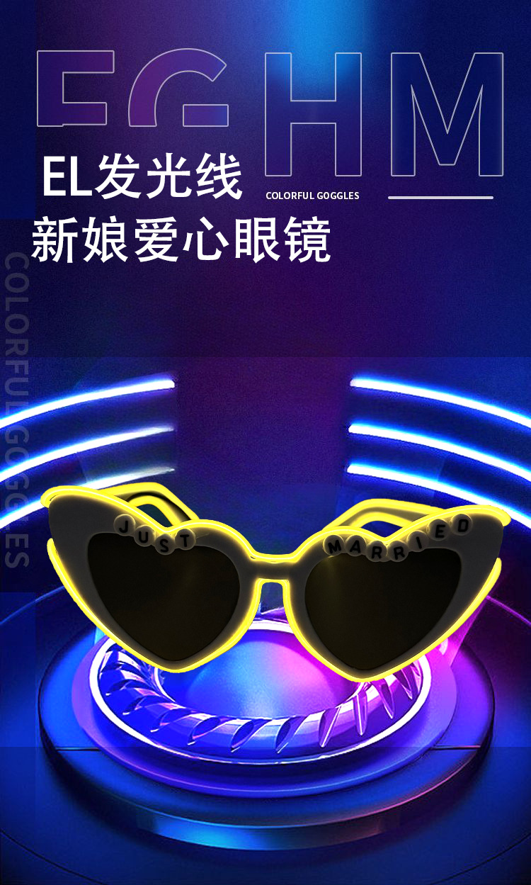 厂家供应 发光爱心新娘眼镜 万圣节复活节狂欢派对舞台炫酷气氛