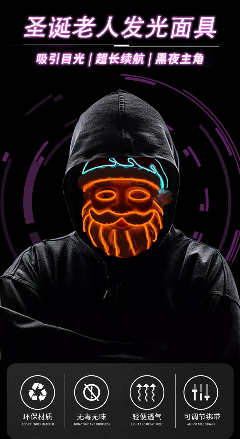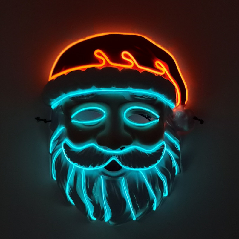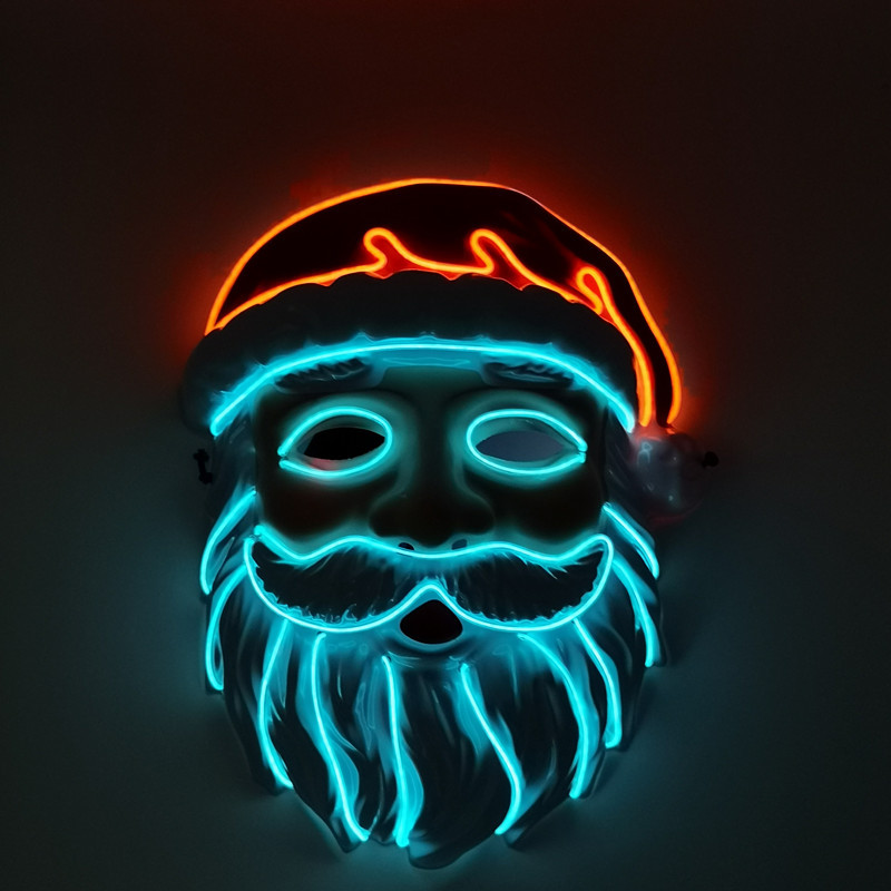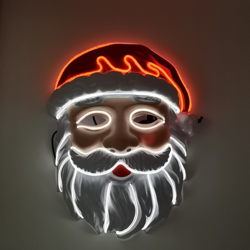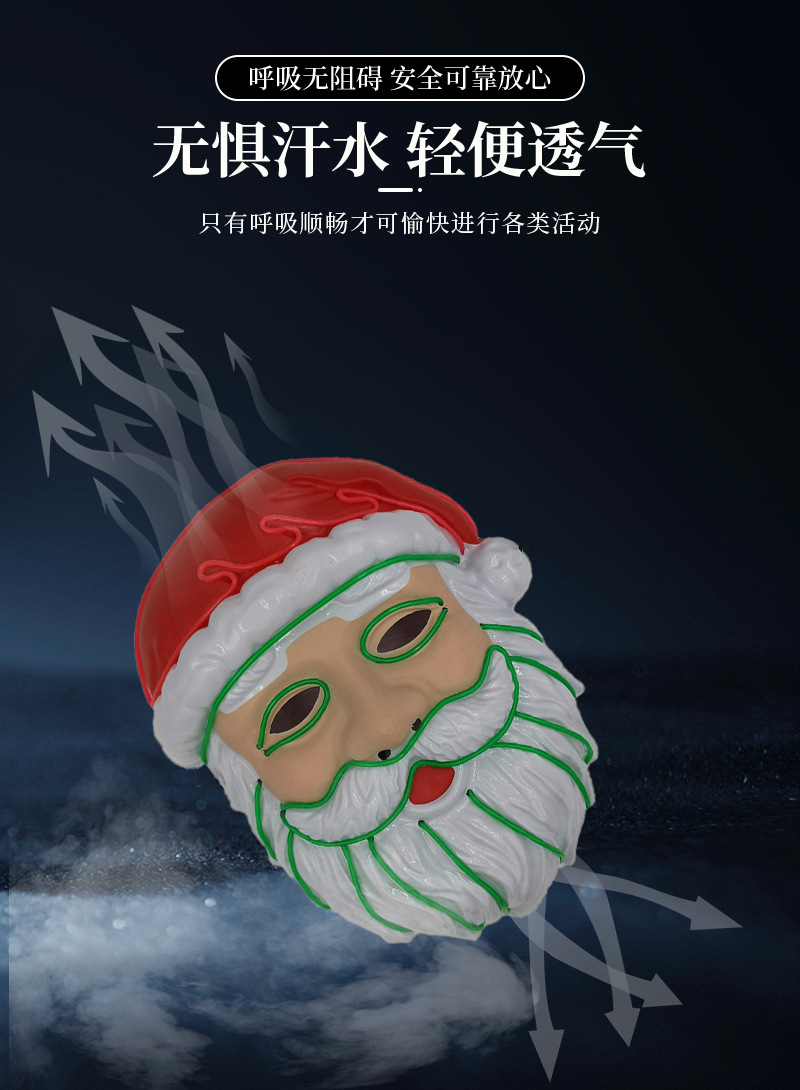 厂家供应 LED冷光线圣诞老人发光面具 圣诞节庆装扮舞台造型道具