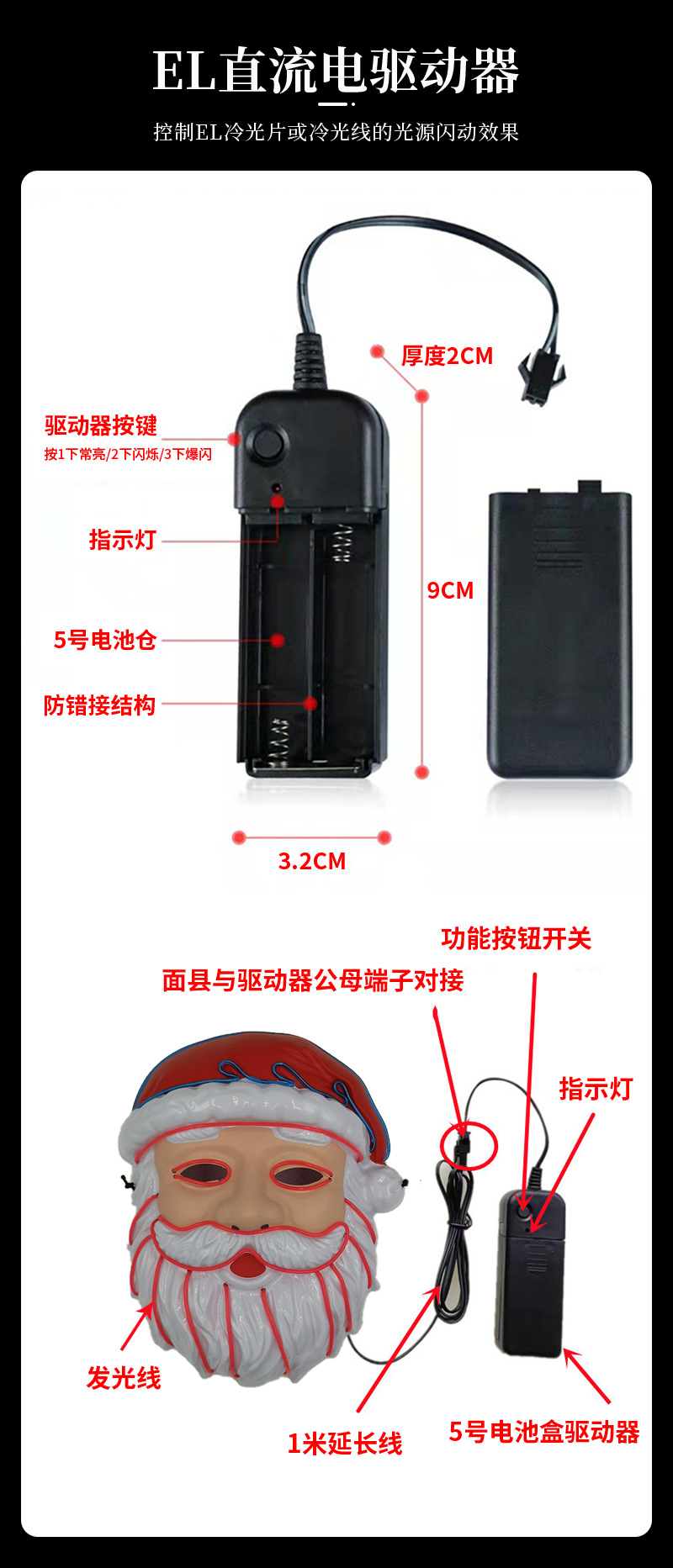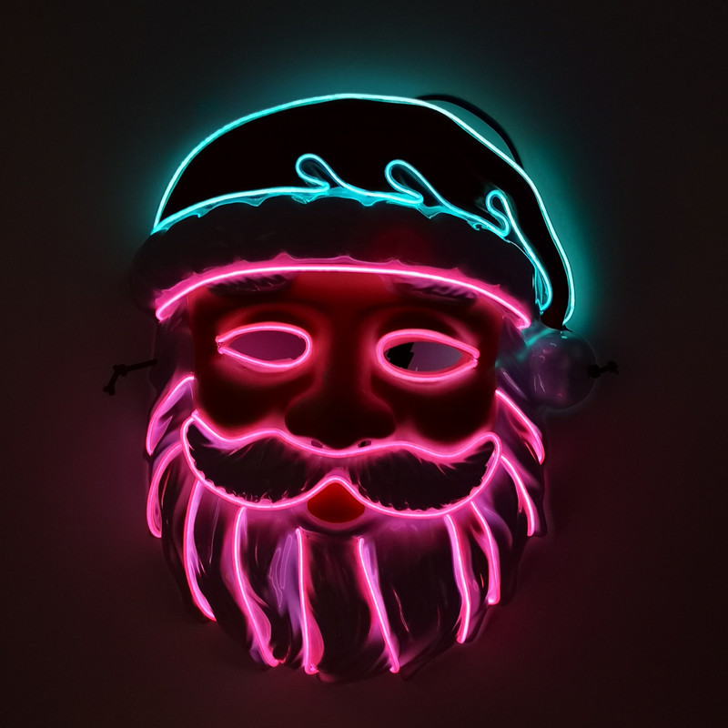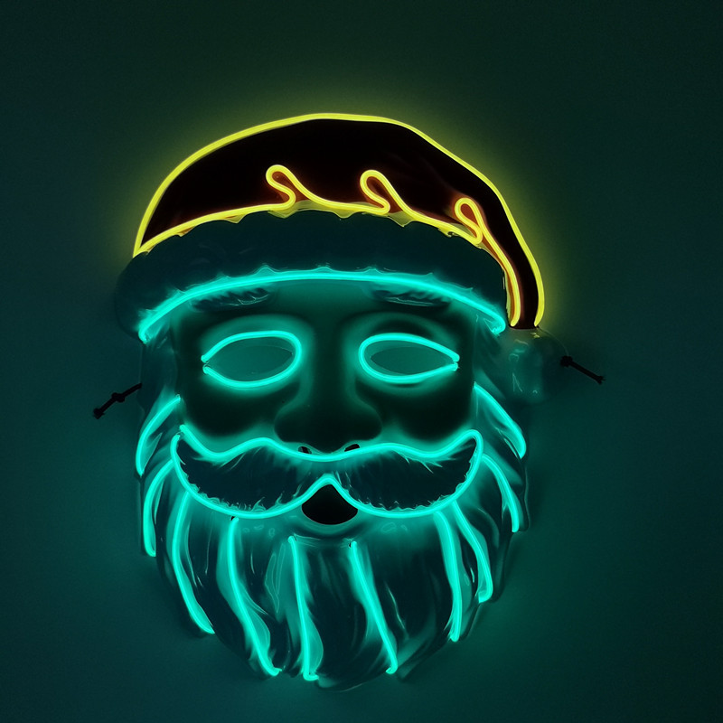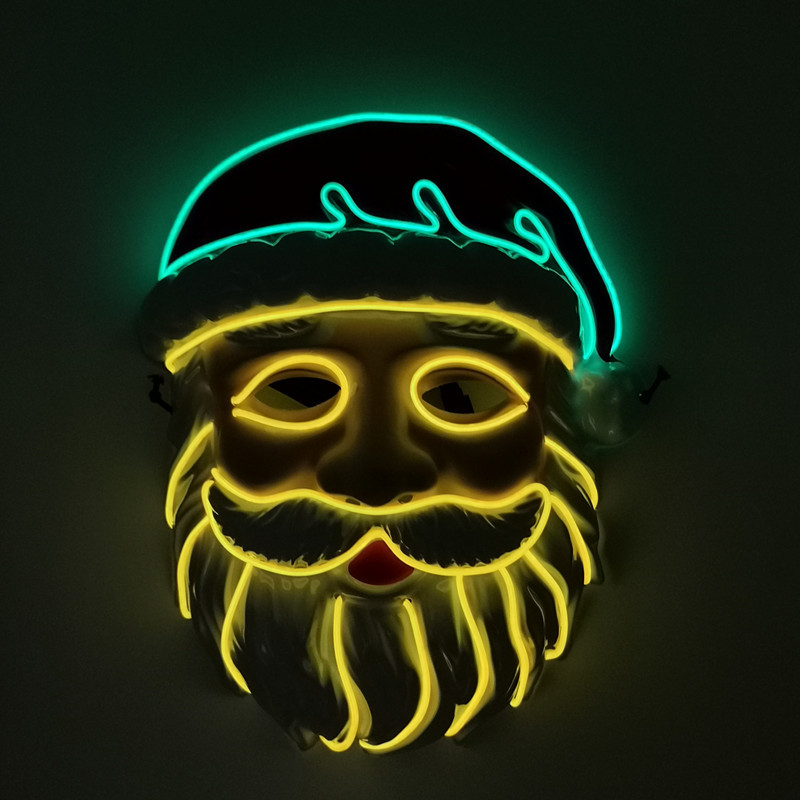 厂家供应 LED冷光线圣诞老人发光面具 圣诞节庆装扮舞台造型道具