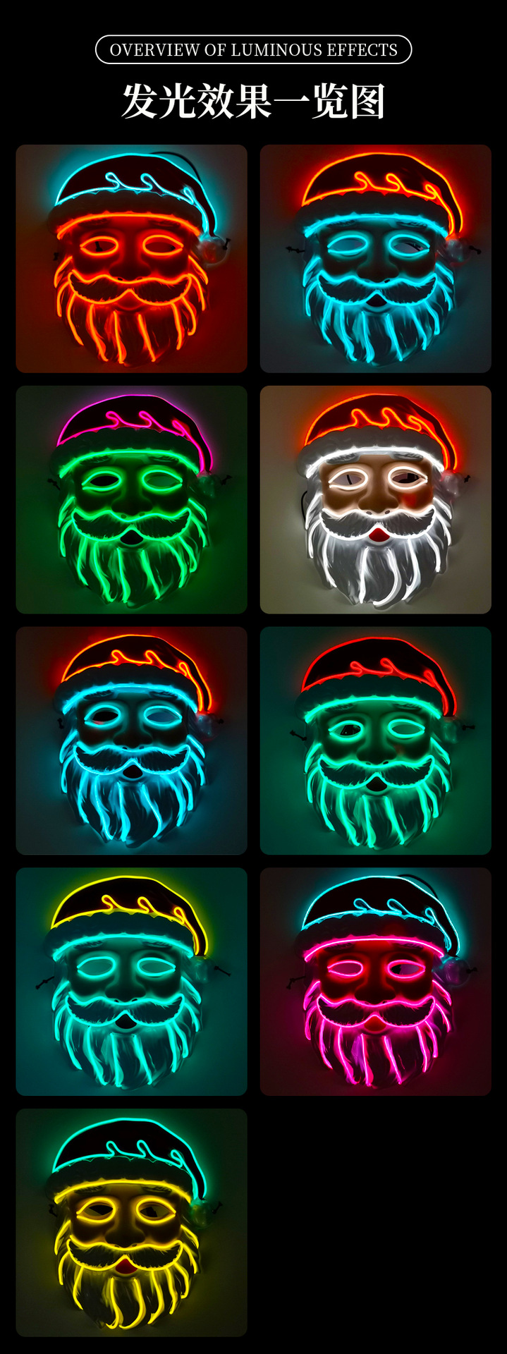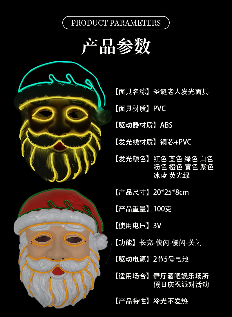 厂家供应 LED冷光线圣诞老人发光面具 圣诞节庆装扮舞台造型道具 English | 投诉