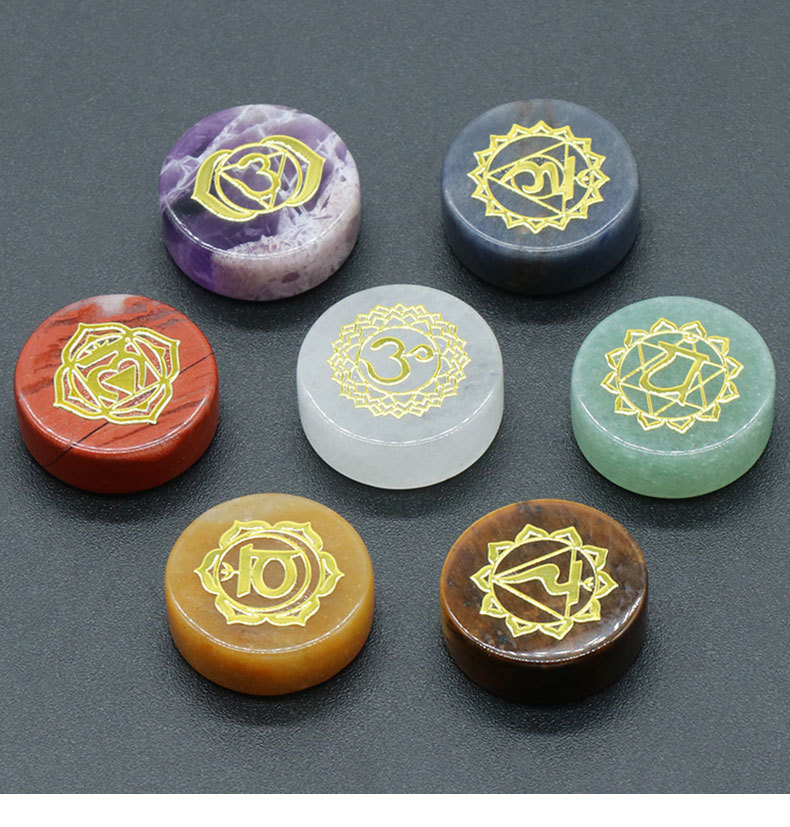 1493-天然水晶七彩石圆片符号款瑜伽石7颗袋装wish亚马逊跨境热卖