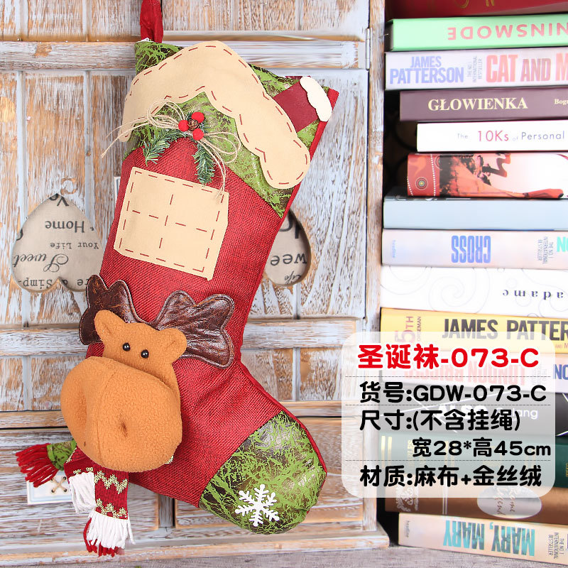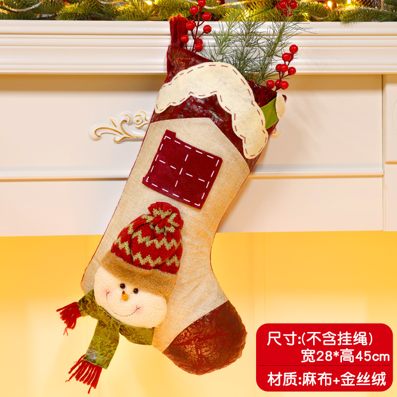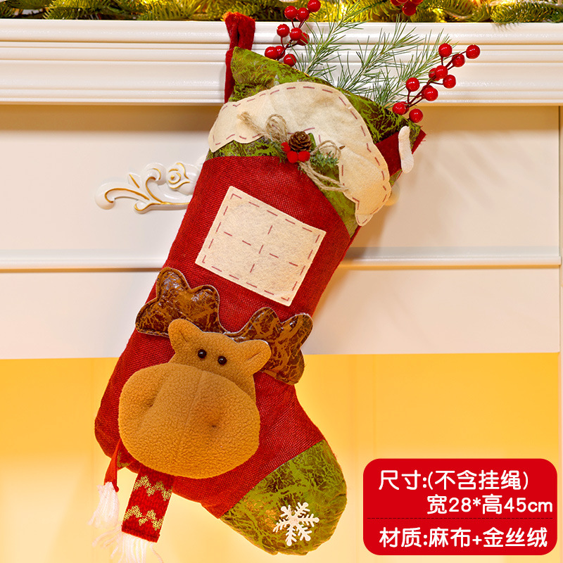 圣诞袜立体麻布毛绒礼物圣诞节装饰品老人雪人麋鹿圣诞树挂件批发