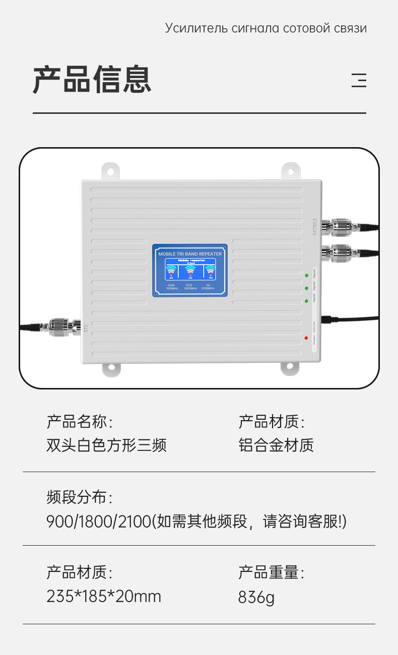 适用范围: 手机信号放大器 手机信号增强接收器 信号 品牌: ayissmoye 型号: HB-39 货号: HA143 上市时间: 2025.05.20 货源类别: 现货 频率范围: 900/1800/2100 网络制式: 手机信号放大器 手机信号增强接收器 信号 覆盖面积: 500以上 速度: 300m 协议: 802.11ac 是否内置防火墙: 是 产品尺寸: 235*185*2cm 产品重量: 0.85kg 最快出货时间: 1-3天 是否支持一件代发: 支持 加工方式: 来图定制 发票: 提供发票 售后服务: 店面三包 包装清单: 手机信号放大器+手机信号放大器配件