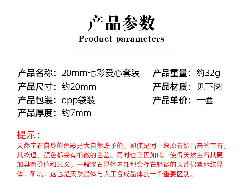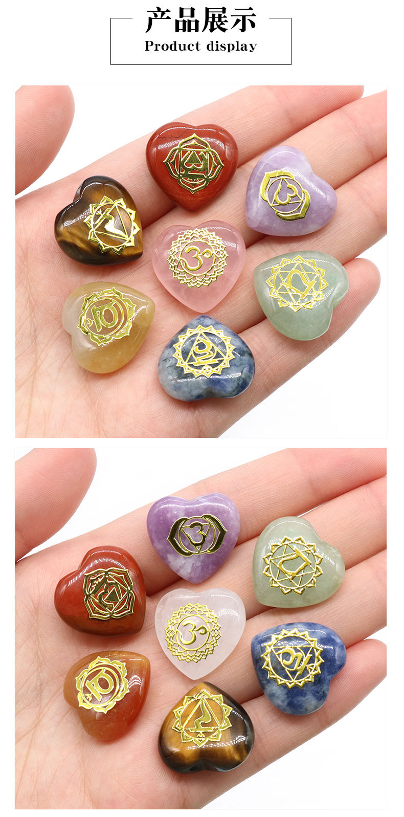 1563-七脉爱心符号款7颗一包 天然水晶玛瑙瑜伽石金属标 厂家直销 English | 投诉
