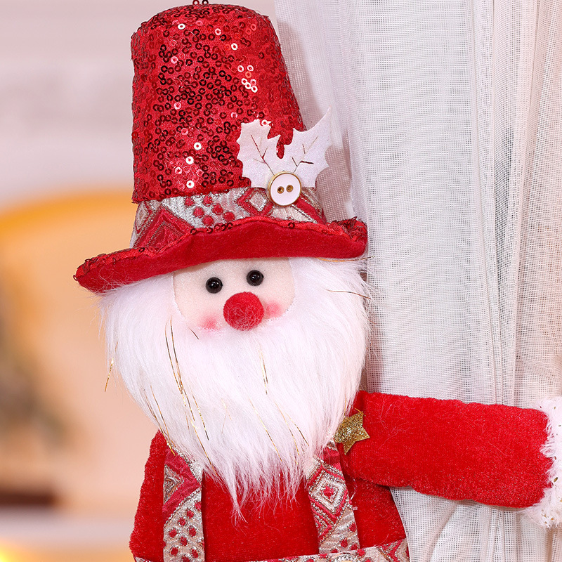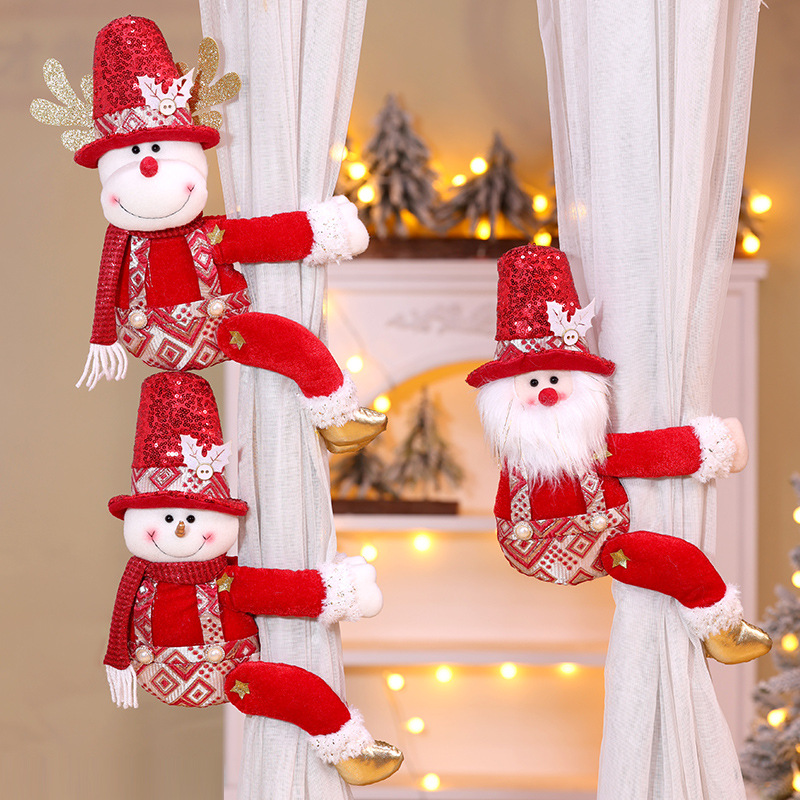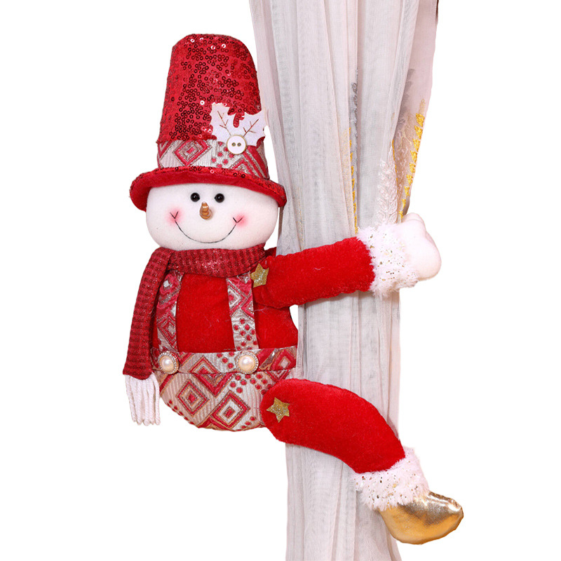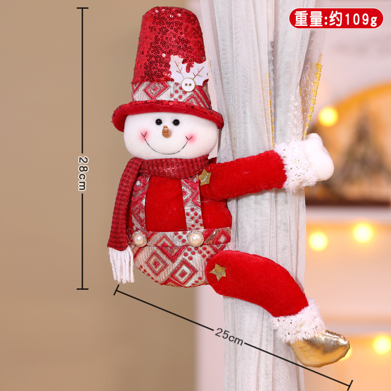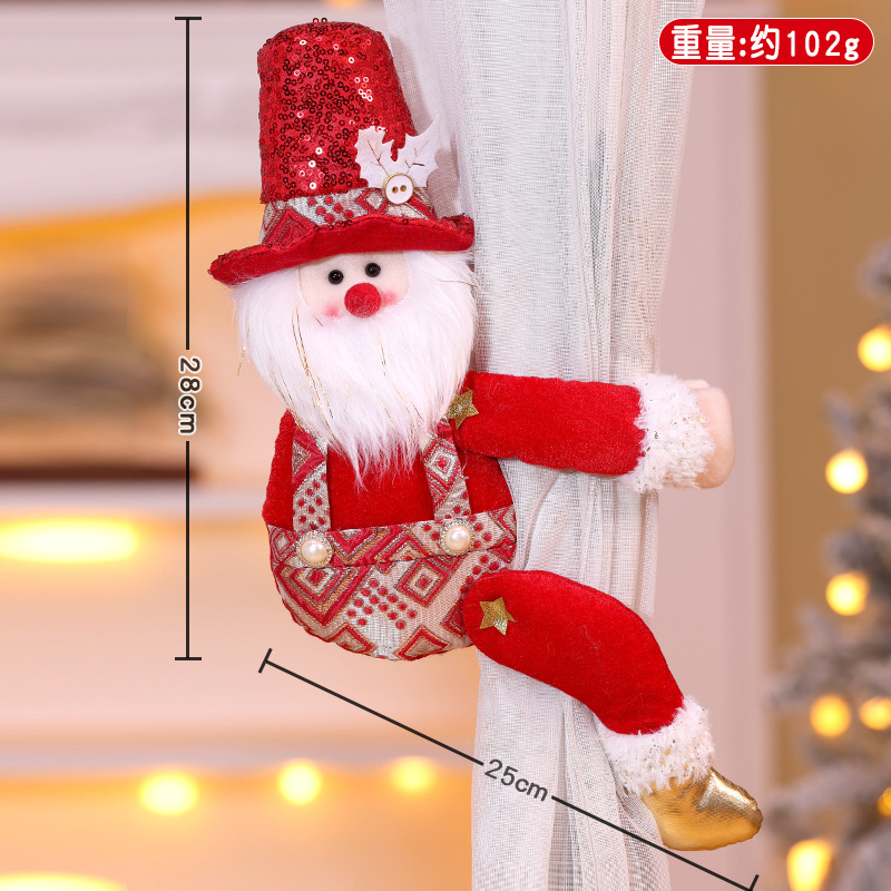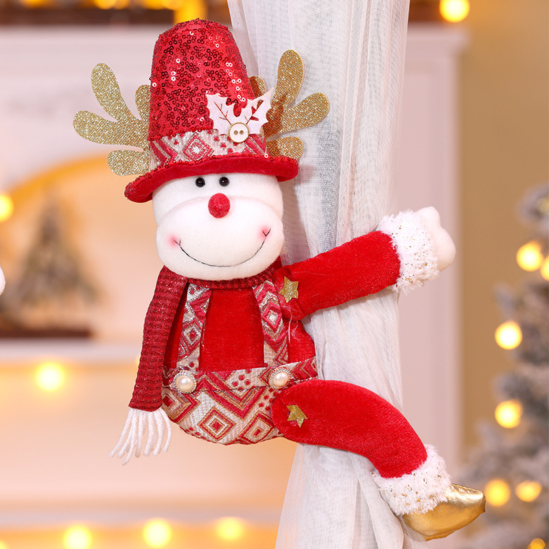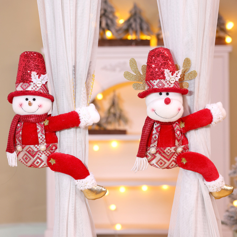 跨境新款圣诞窗帘扣装饰品圣诞节红色亮片老人雪人创意玩偶窗帘抱