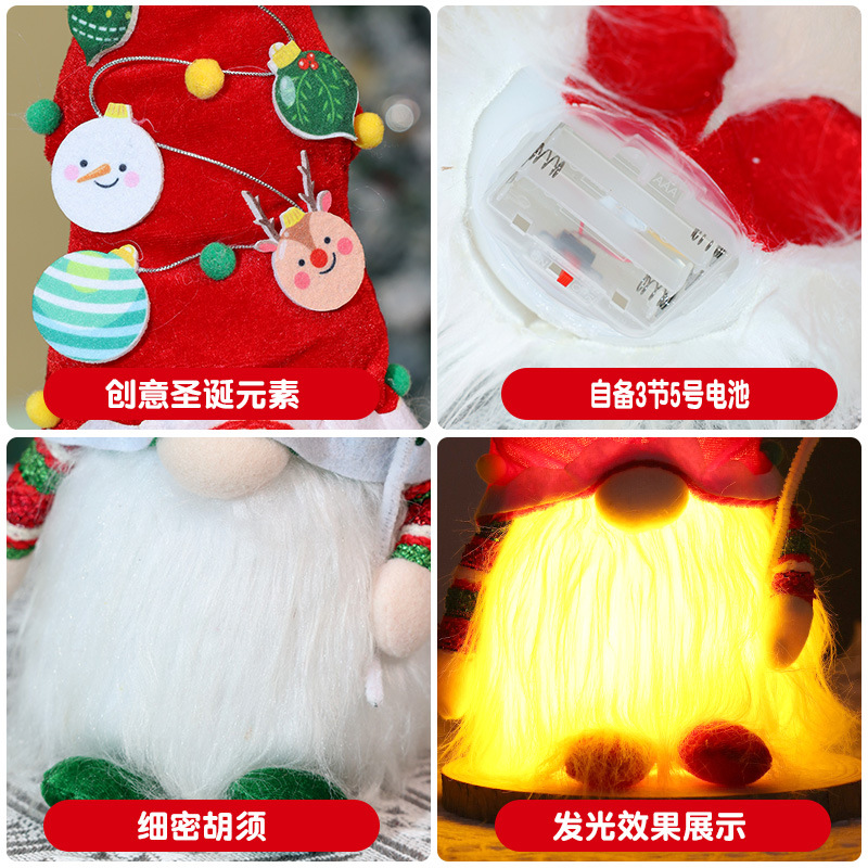 圣诞树无脸娃娃圣诞发光玩偶礼物鲁道夫带灯公仔商场橱窗摆件批发