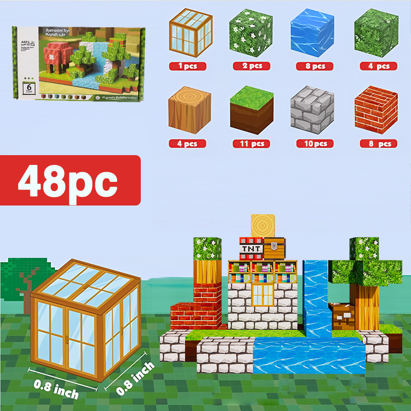 新跨境亚马逊儿童益智玩具磁力方块积木原始森林系列迷你磁吸拼搭