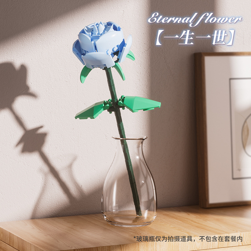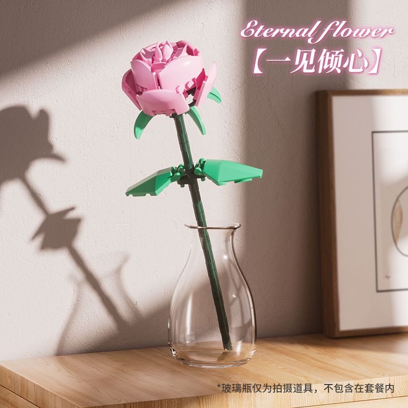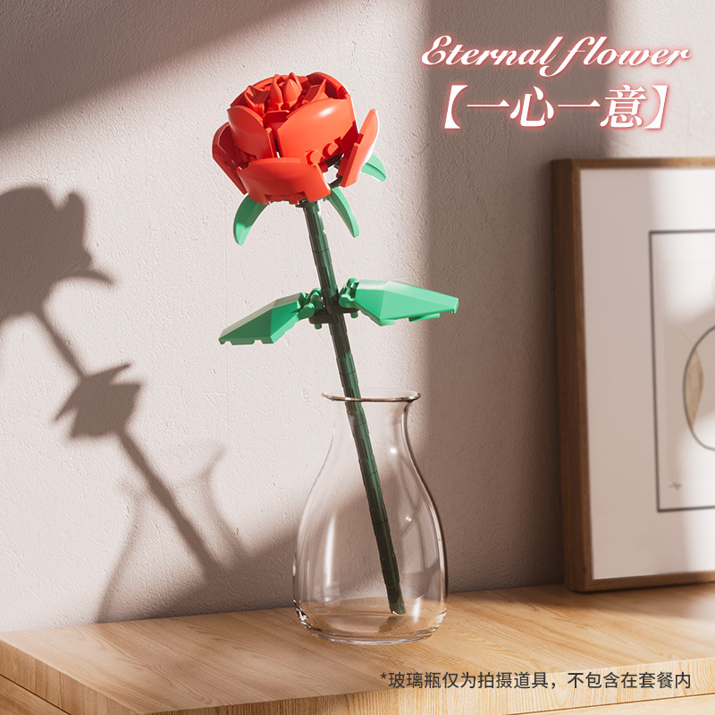 益智玩具兼容乐高玫瑰花毕业季礼物积木花拼装益智玩具摆饰小颗粒