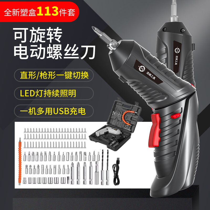 3.6V电动螺丝刀充电式锂电起子机螺丝批迷你螺丝刀塑盒113件套