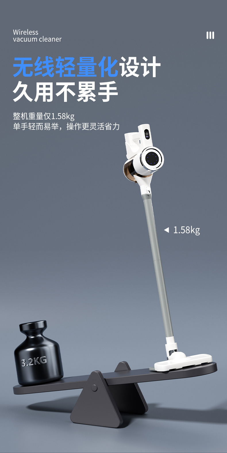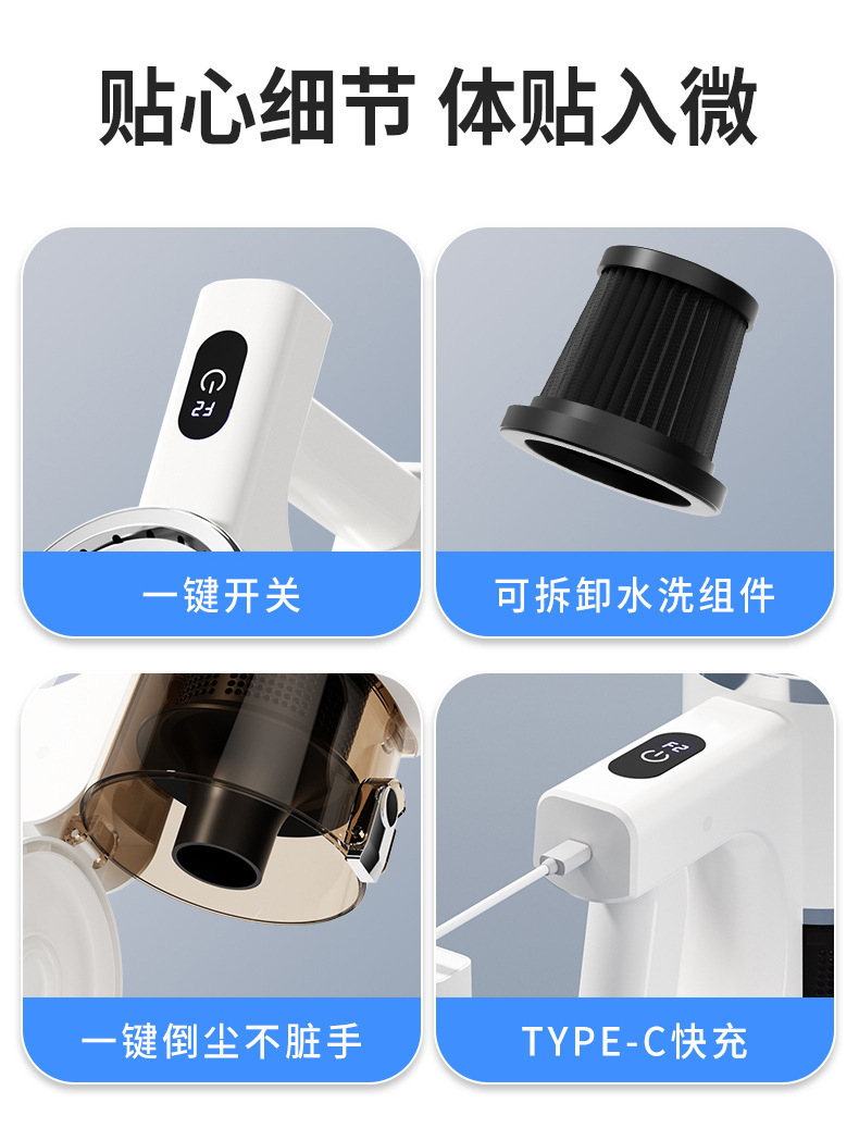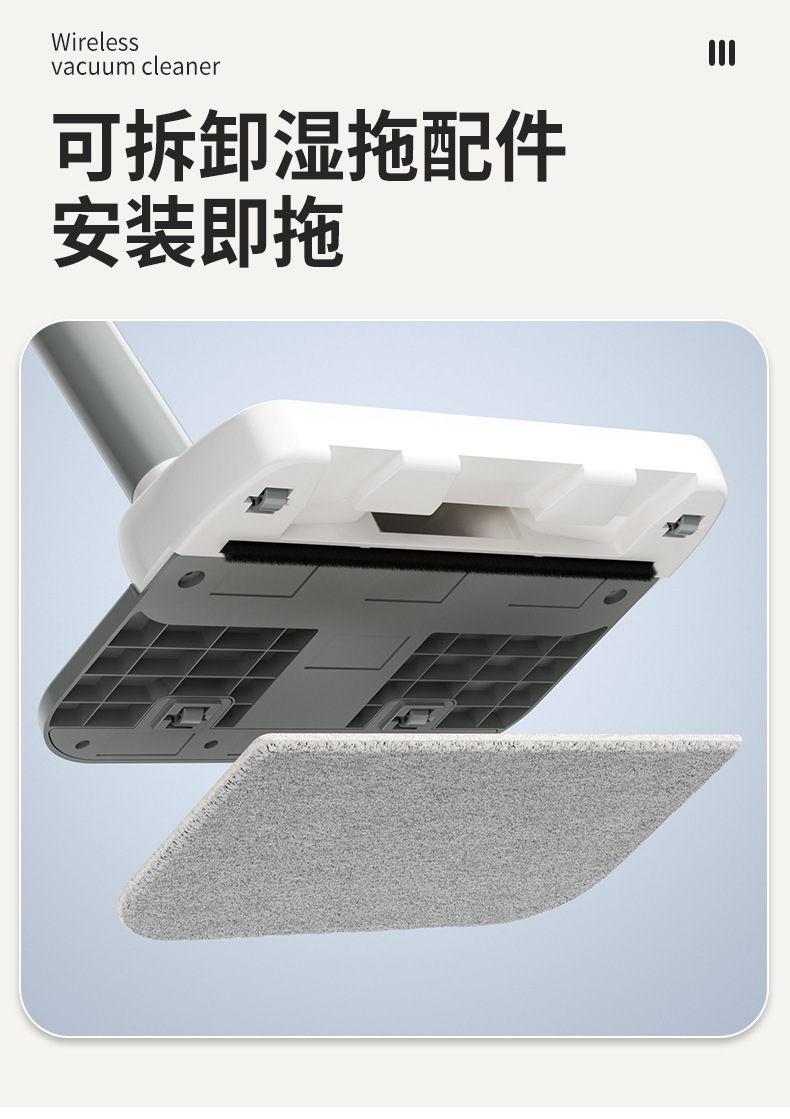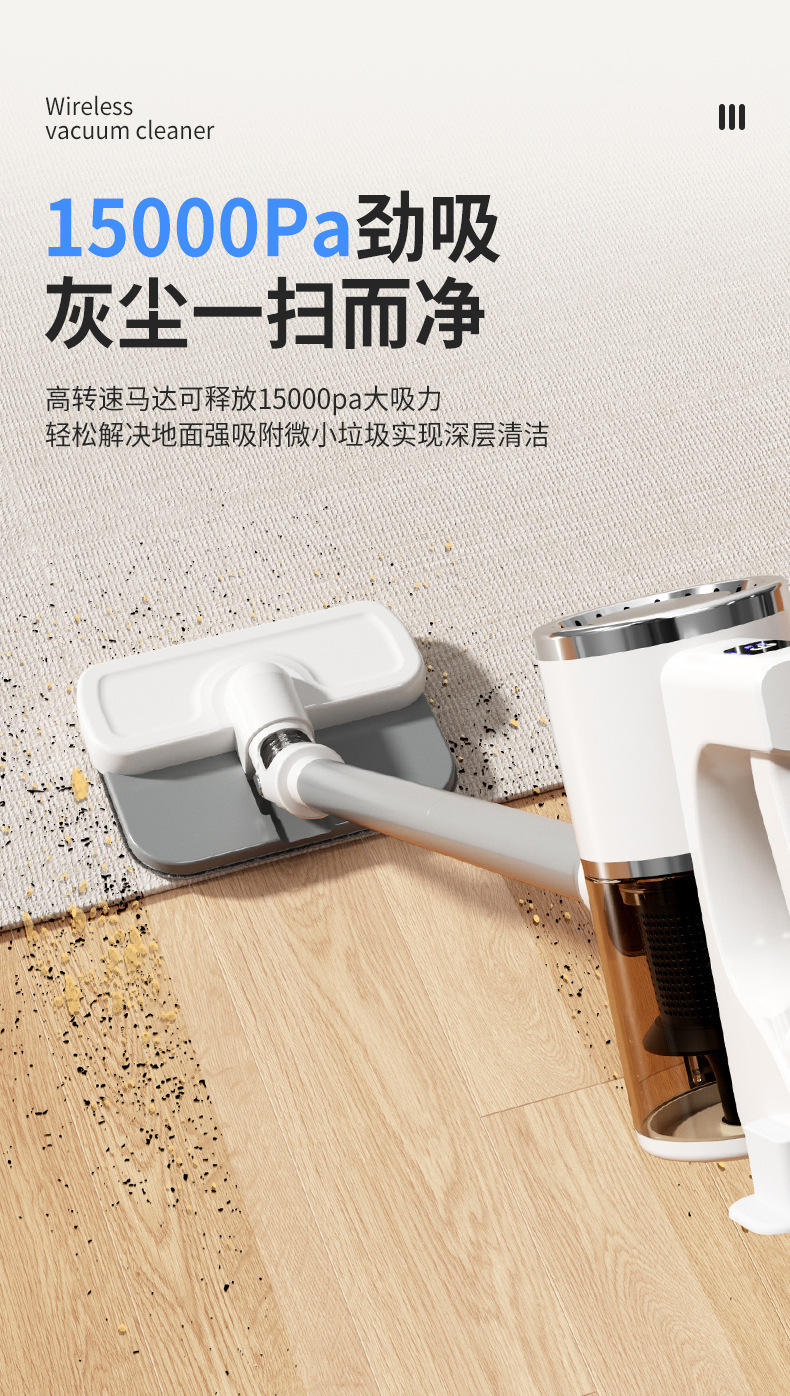 产品配置:主机,集尘杯,连接杆,地刷,拖布,毛头刷,除螨刷,数据线,说明书