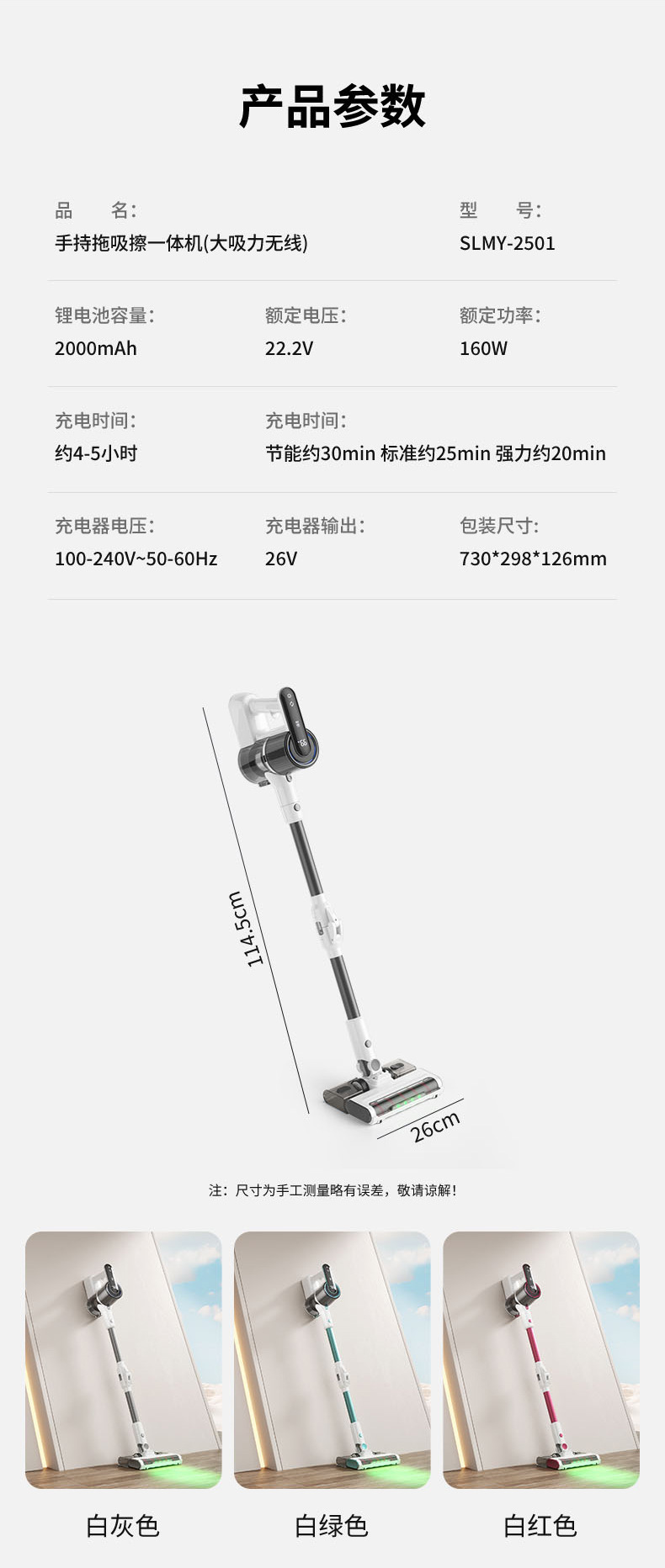 品牌: 无 吸力: 15000 电源线长度: 无限 产品类别: 吸尘器 型号: SLMY-250L 货号: AL979930452711 吸尘器功能: 干湿两用 储尘类型: 尘盒/尘桶 特殊吸嘴: 擦吸二合一地刷 额定电压: 111V~240V(含) 额定频率: 140 额定功率: 160 颜色: 白粉,白绿,白灰 主要下游平台: ebay,亚马逊,wish,速卖通,独立 主要销售地区: 非洲,欧洲,南美,东南亚,北美,东北亚, 有可授权的自有品牌: 否 是否跨境出口专供货源: 是