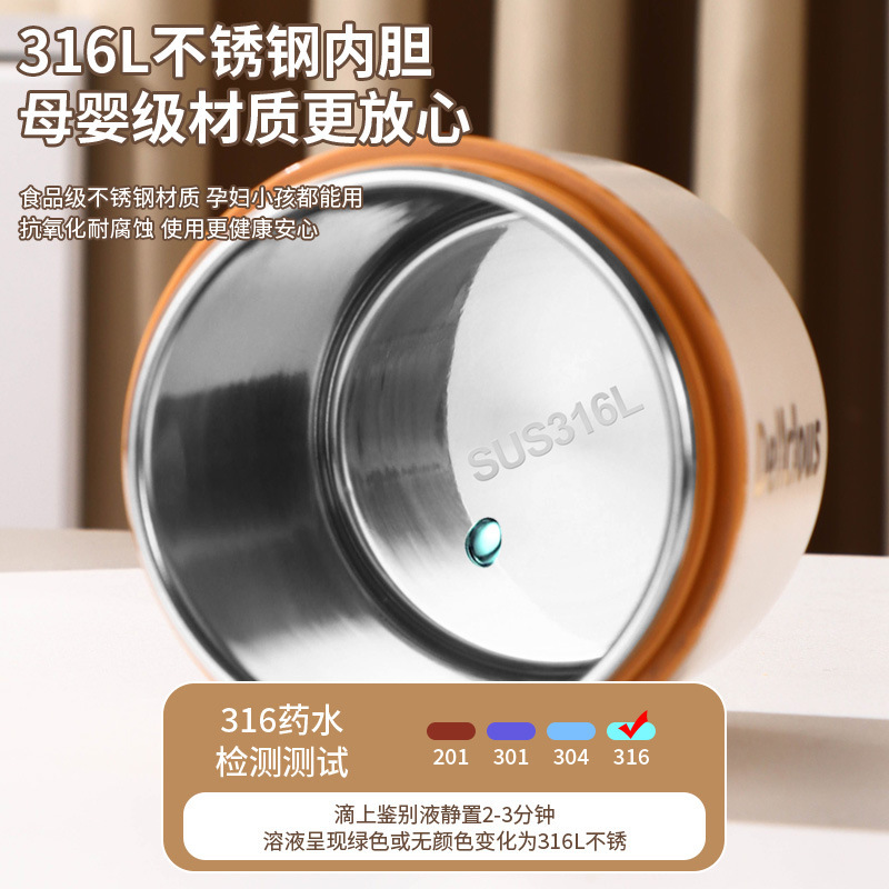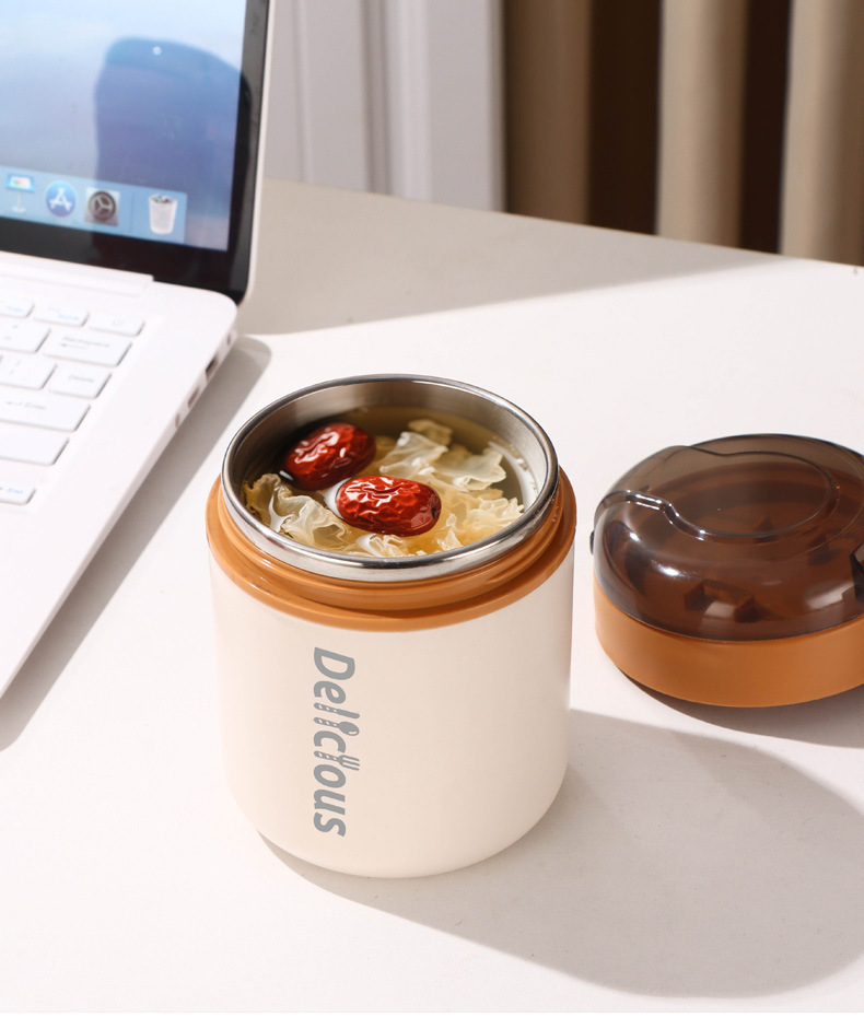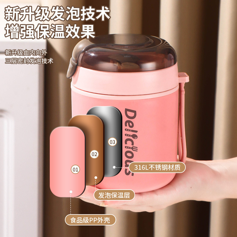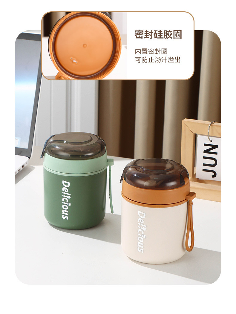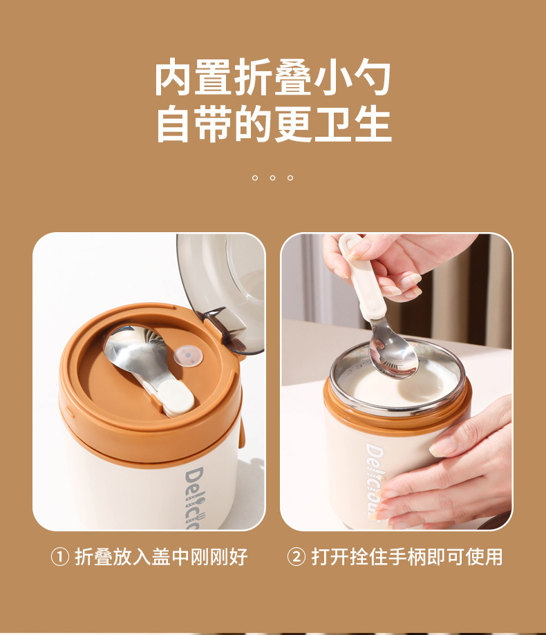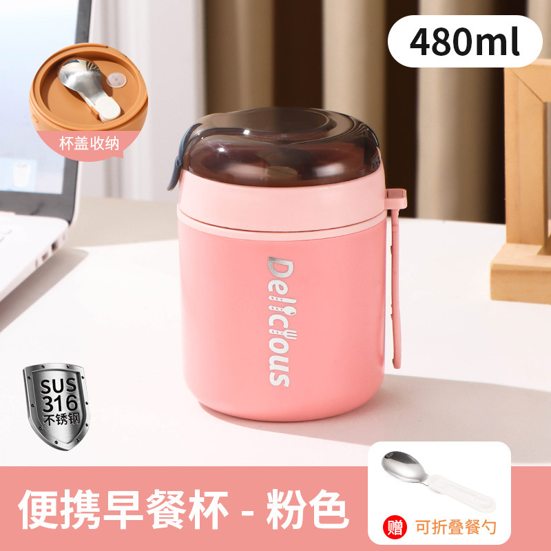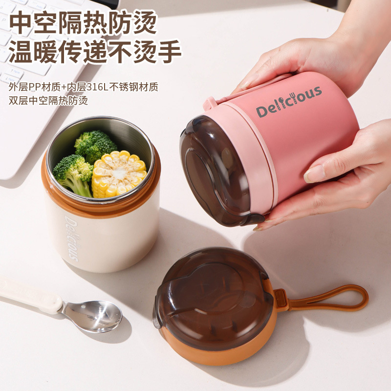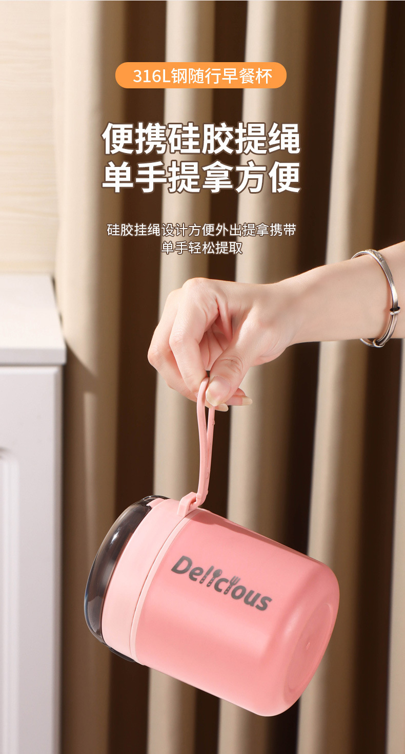 316不锈钢早餐杯+盖+勺保温上班族粥杯便携汤杯小型保温饭盒代发