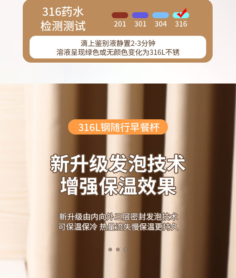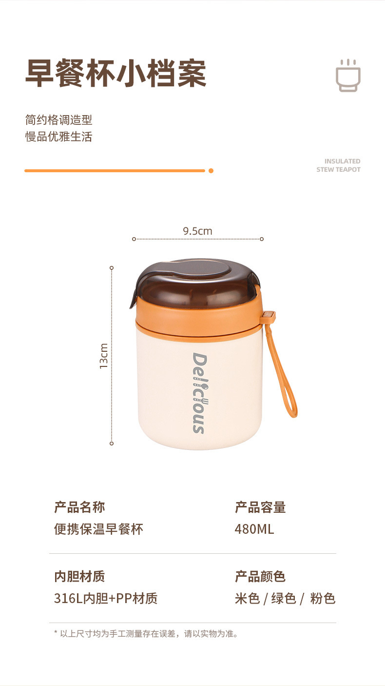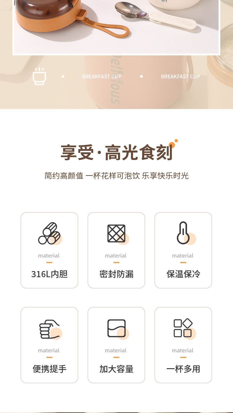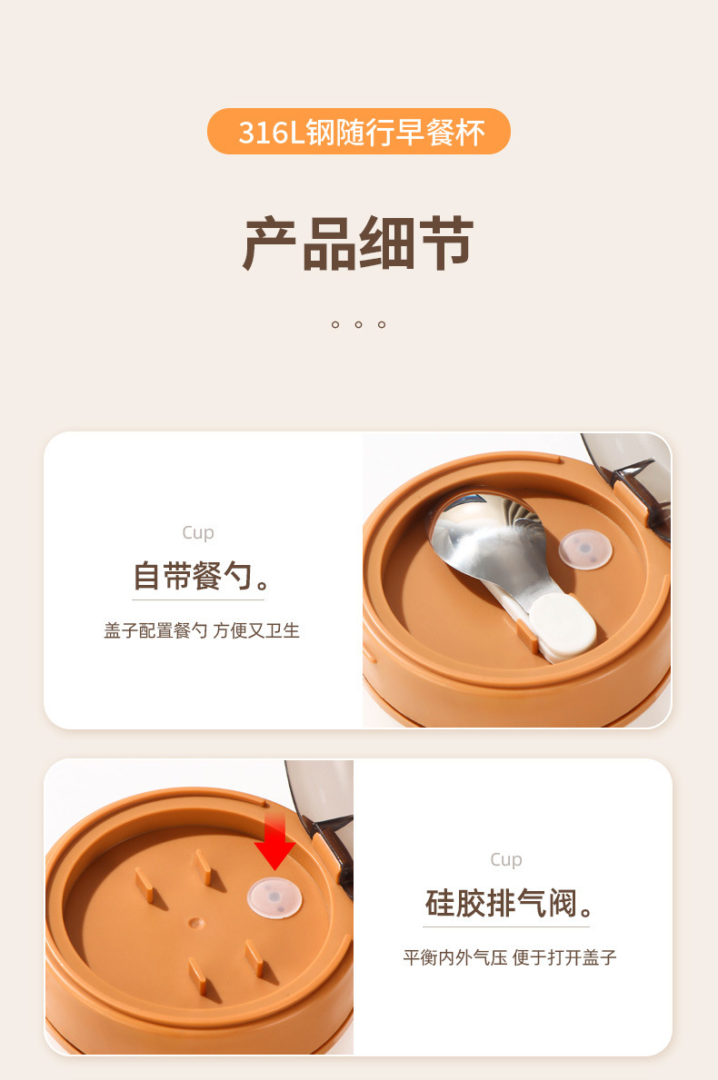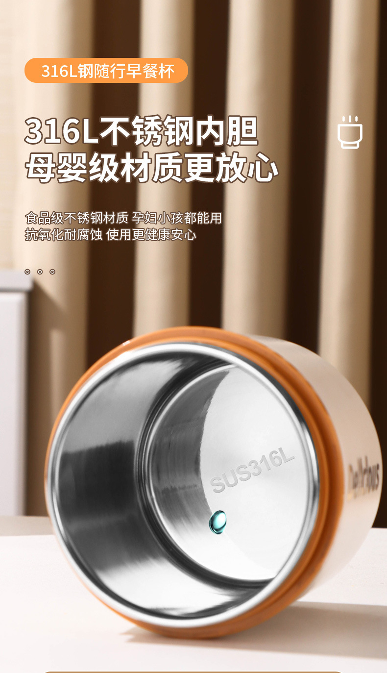 316不锈钢早餐杯+盖+勺保温上班族粥杯便携汤杯小型保温饭盒代发 投诉