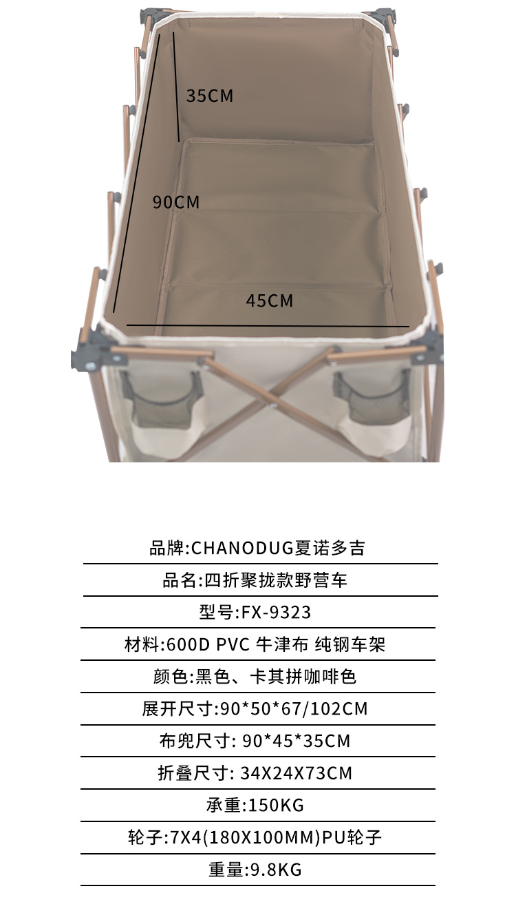 材料:600D PVC 牛津布 纯钢车架