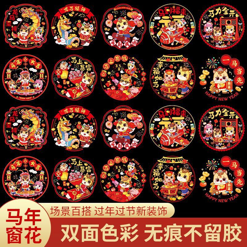 2026新年马年窗花春节静电贴玻璃窗贴过年生肖装饰福字门贴批发