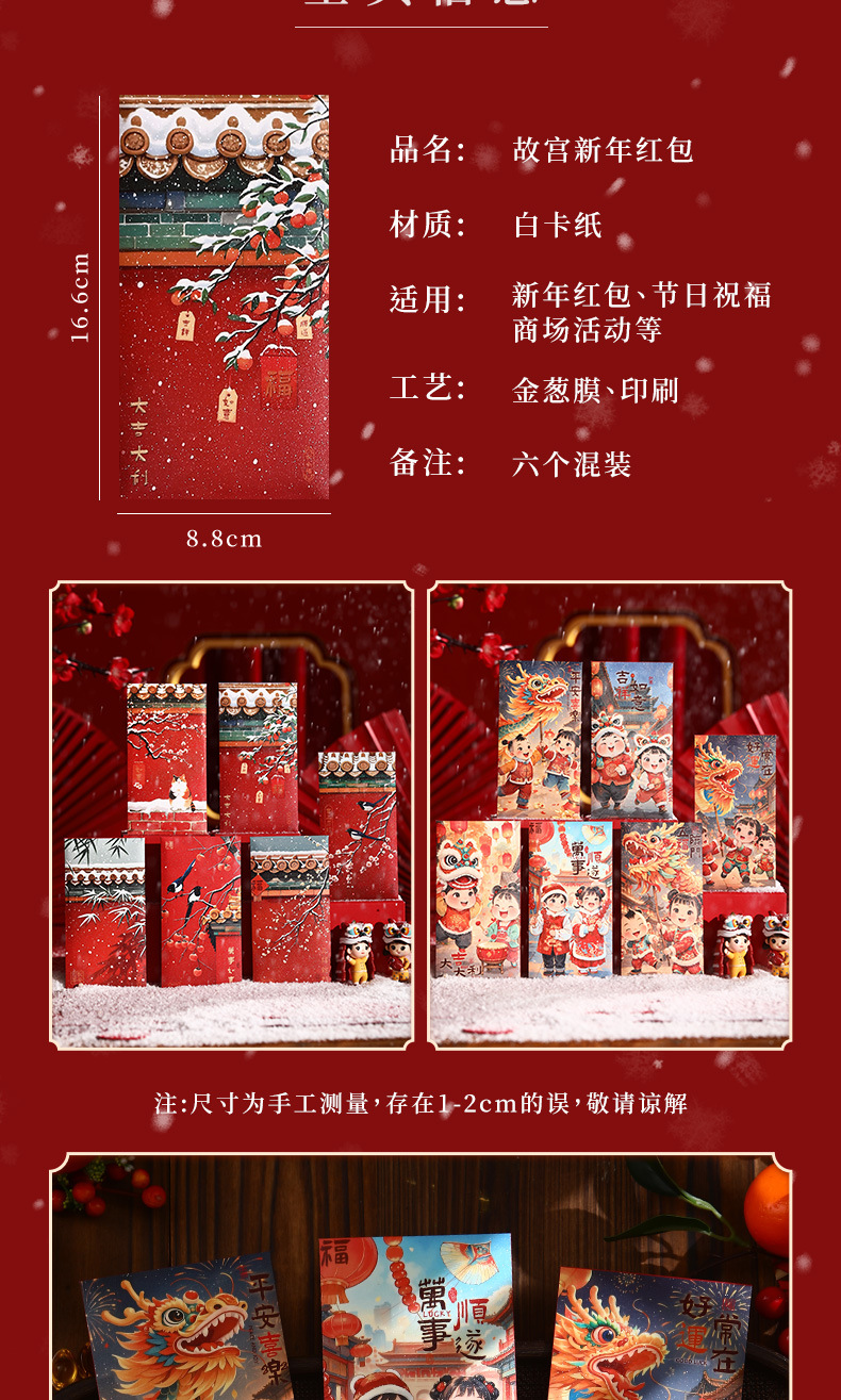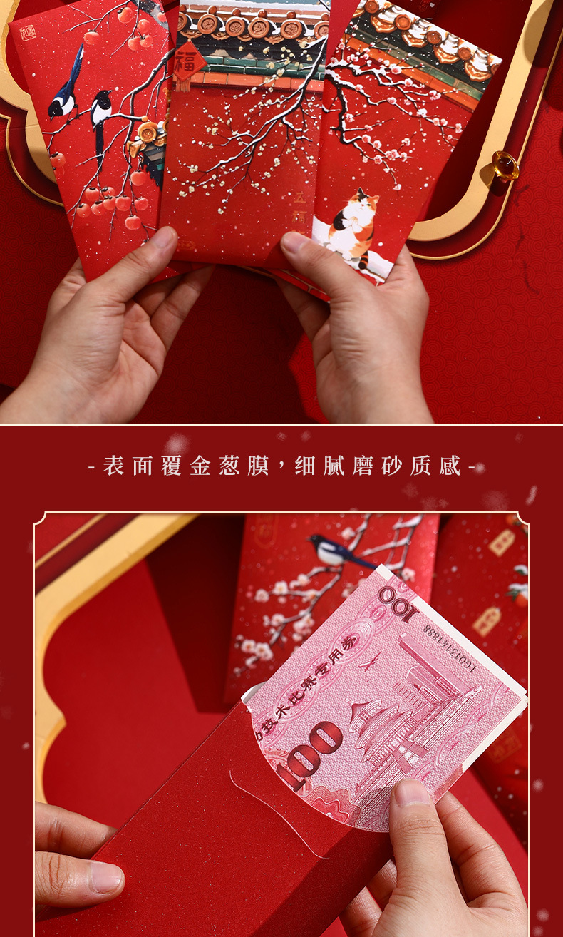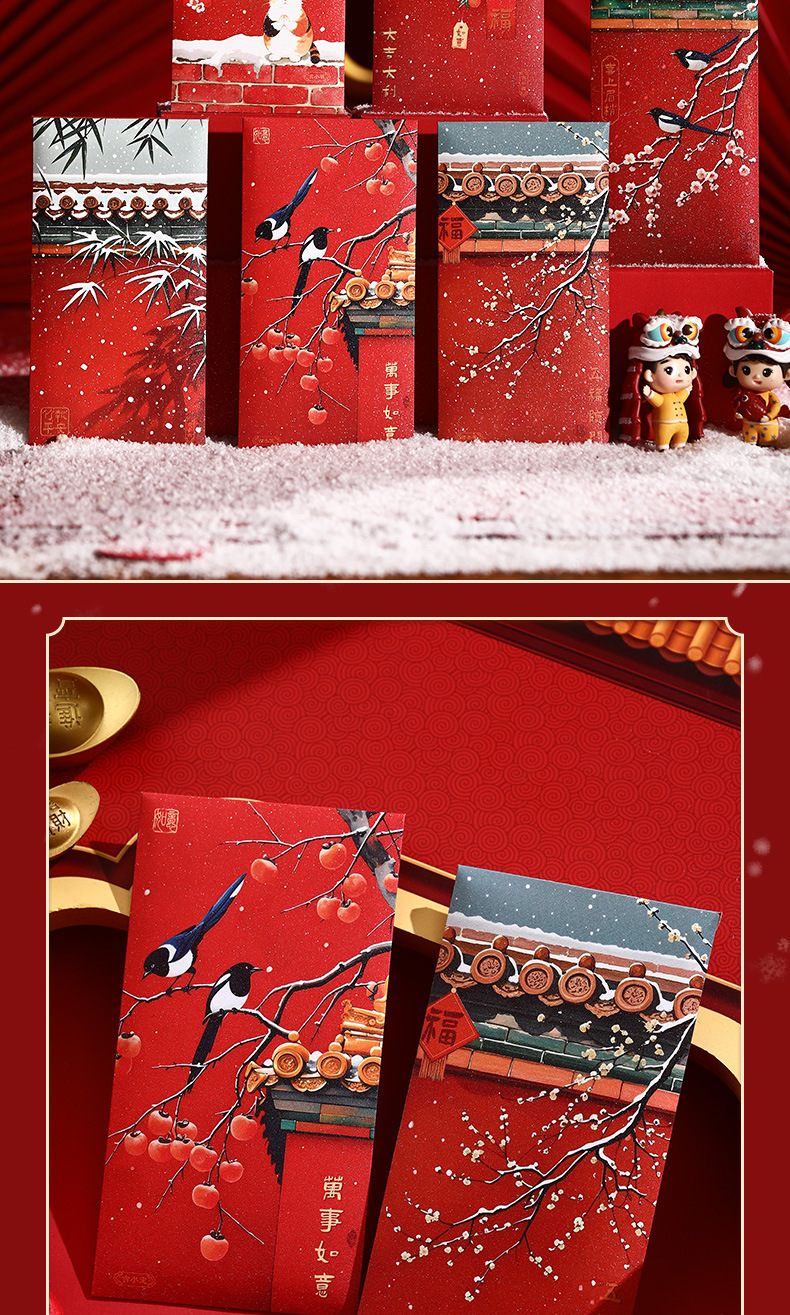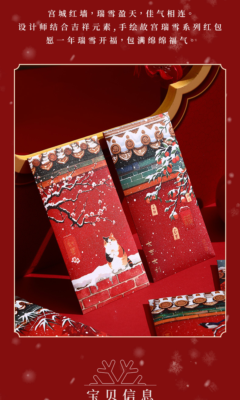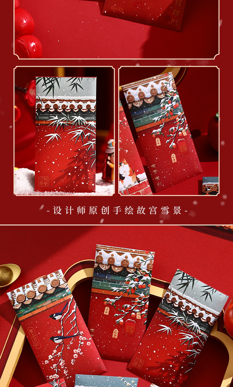 2025新年红包中式宫廷风瑞雪国潮卡通高档金葱千元春节压岁包故宫 投诉