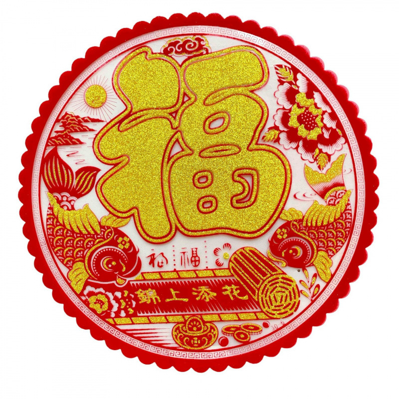 PET金色金粉植绒撒粉搬家窗花乔迁新年春节窗户PVC福字贴装饰 投诉