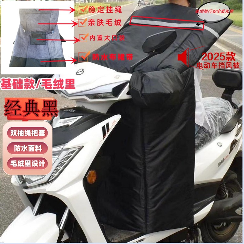 本产品选用PVC防水面料,防水效果好,夜间反光条设计,骑行更安全,把套双抽绳更加保暖,增加侧翼更挡风,双面防水款是里外用的同样的PVC防水面料,毛绒里款是外面是PVC防水面料,里面采用加厚绒毛,内置口袋,方便放置随身小东西,带有脖绳骑行时挂到脖子上有效稳定挡风被,车辆停放时可以挂到车座上防止灰尘溅落到车座上面。款式多多,各位客人在选购本店产品时,有不明白的问题,可以随时咨询客服。