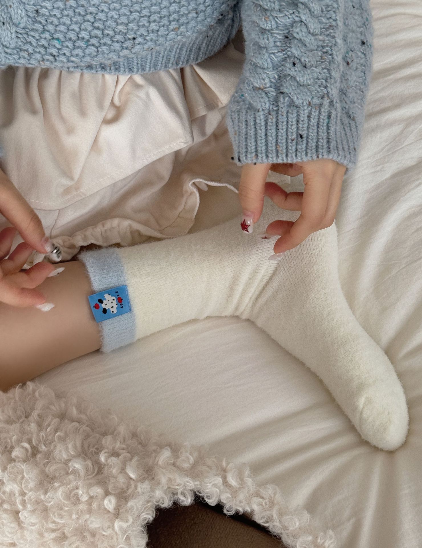 软糯澳绒袜子小狗毛球女士布标中筒球球秋冬加绒加厚保暖中筒袜 投诉