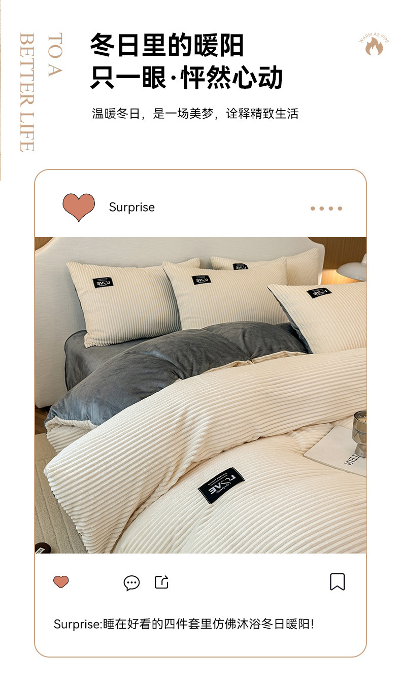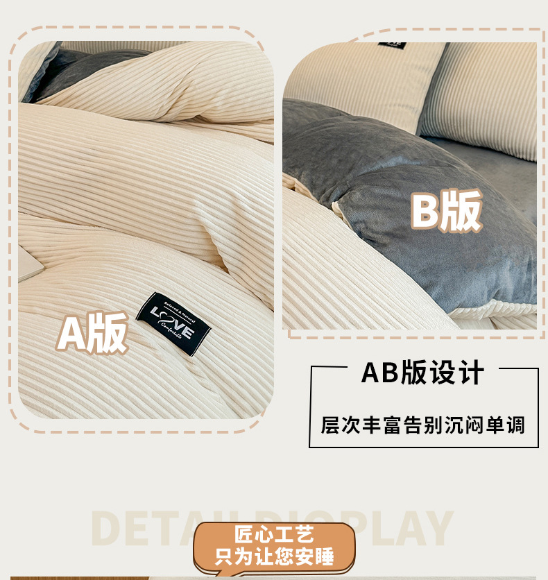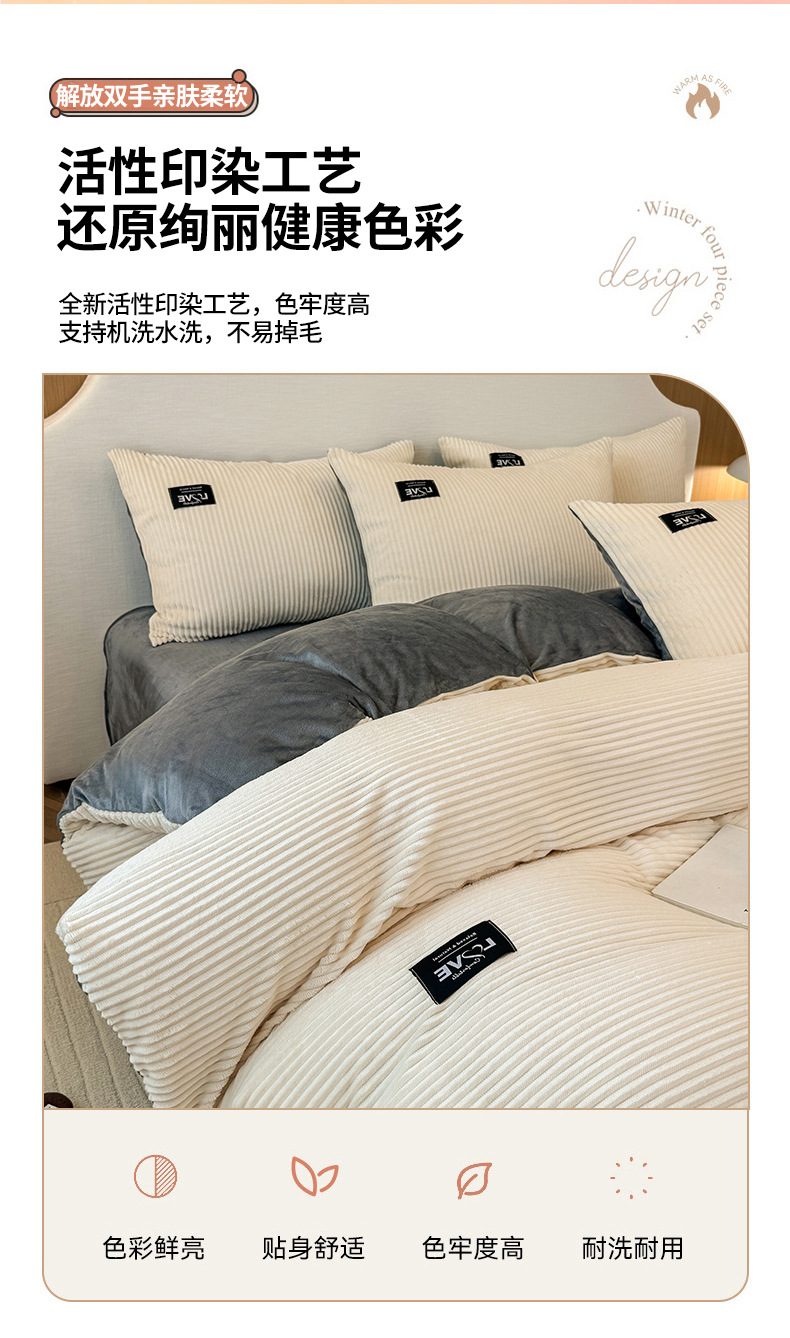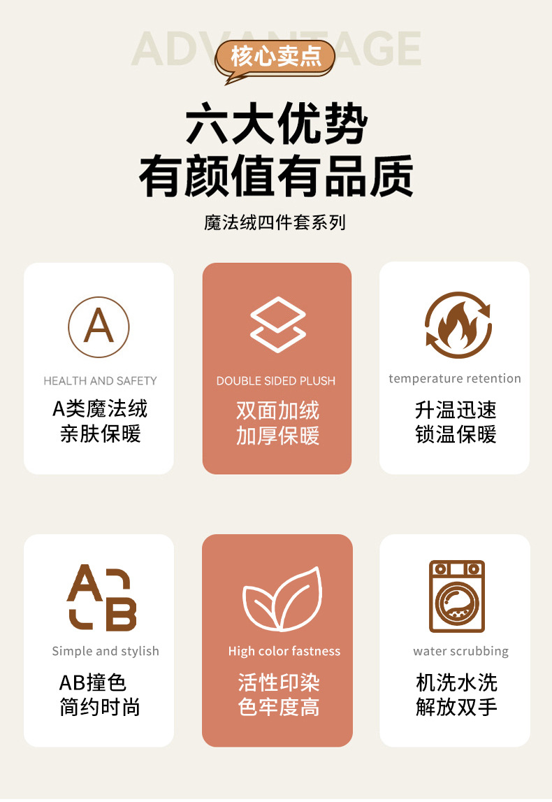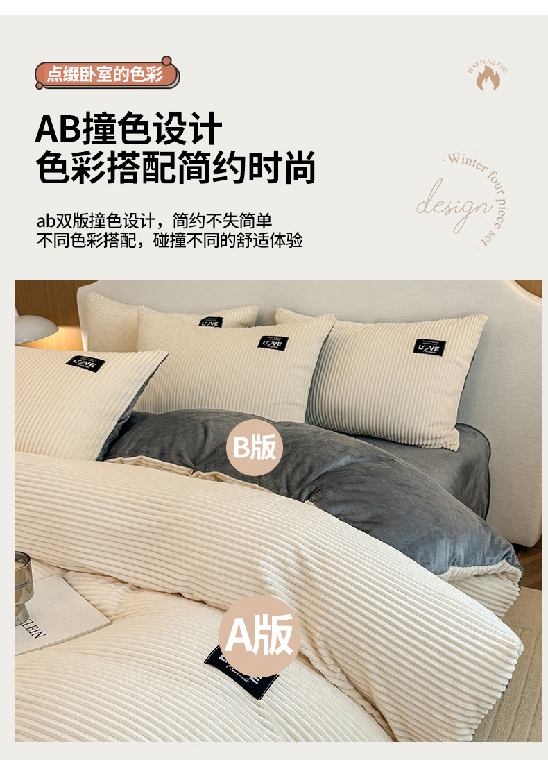 本产品为A类魔法绒四件套,200*230cm被套的标准号在2.2kg左右,面料A版魔法绒160克重 B版水晶绒120克重,产品薄厚适中,大多数人都可以适用,不是特别厚的款式,介意者慎拍