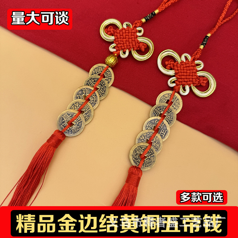 精品金边结黄铜五帝钱挂件葫芦平安吉祥福禄车挂门对门流苏中国结