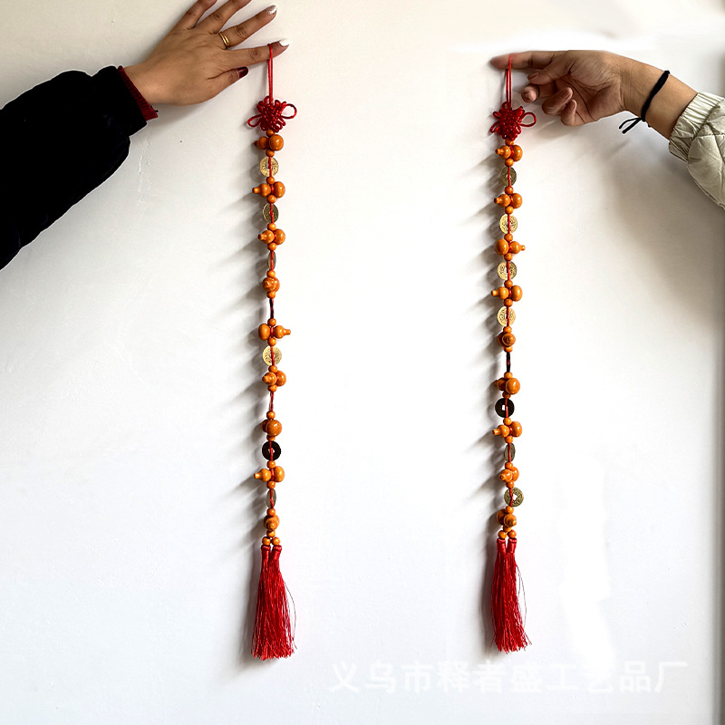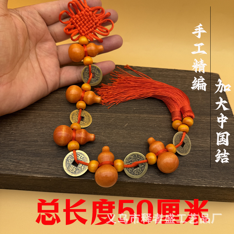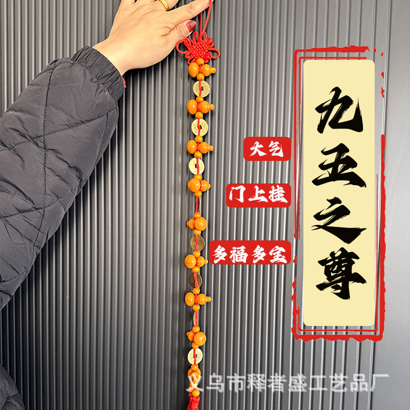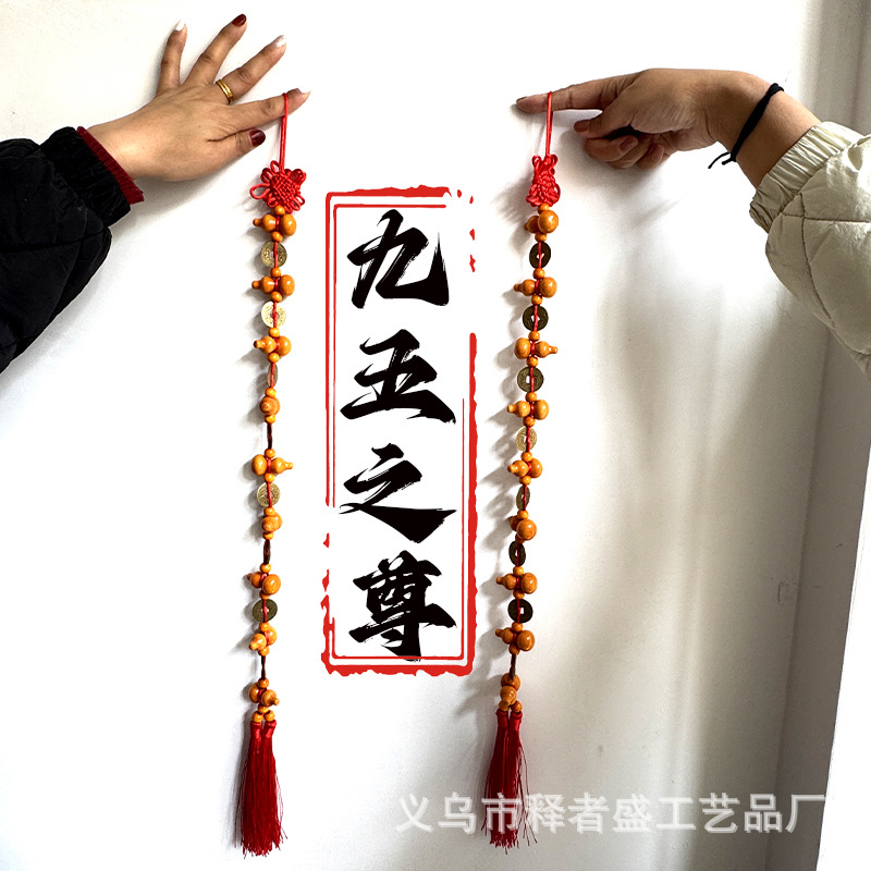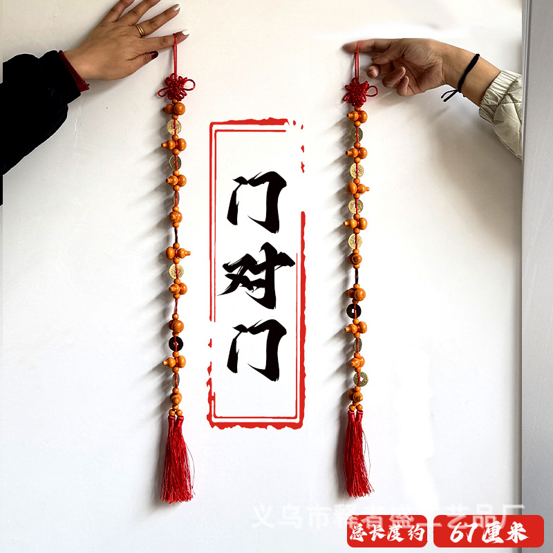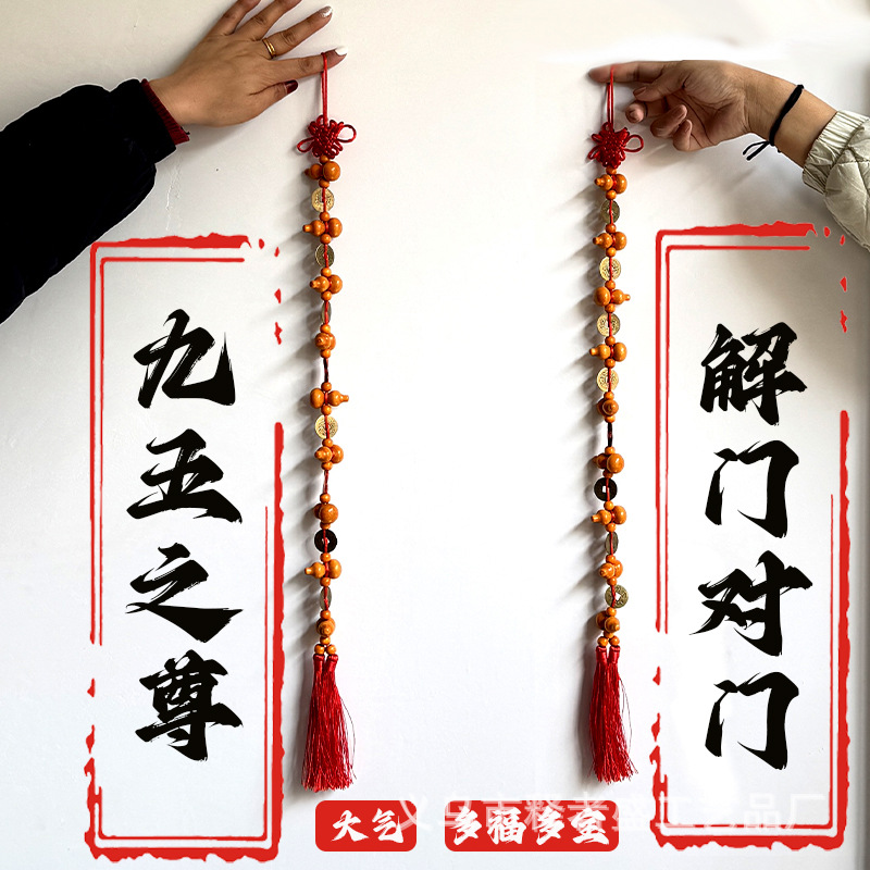 九五之尊实木葫芦铜钱挂件门对门中国结客厅挂饰大门挂件家用客厅