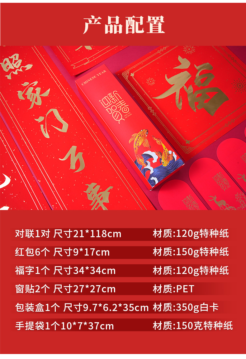材质: 纸 对联类型: 春联 工艺: 烫金 品牌: 昱匠 加印LOGO: 可以 货号: 对联礼盒 是否专利货源: 否 颜色: 财源广进,喜迎新春 重量: 0.468 kg/个