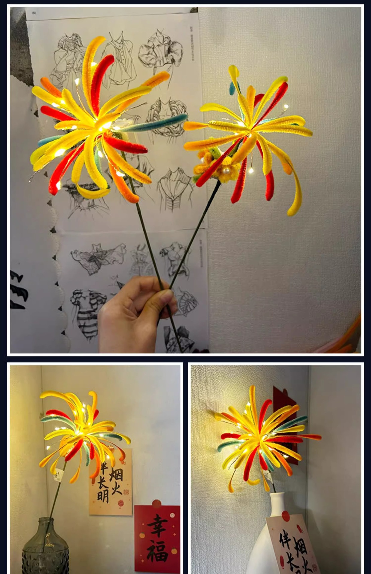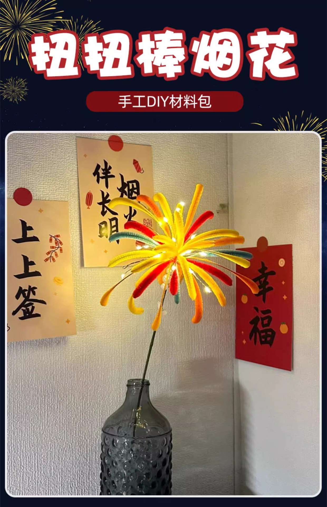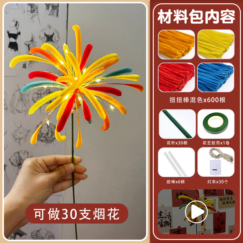 烟花扭扭棒花束手工diy材料包烟火圣诞节花灯生日新年元旦礼品