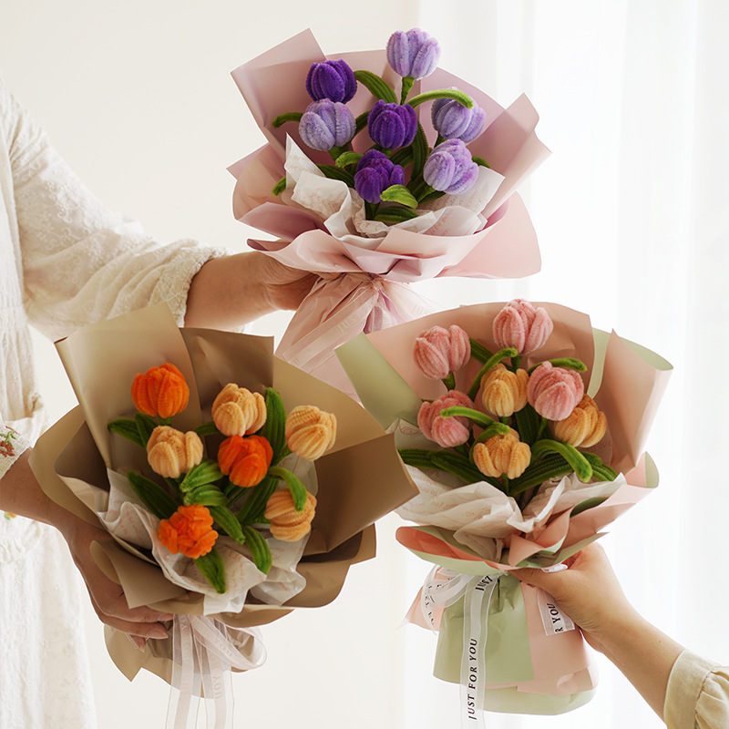 自制郁金香扭扭棒花束手工DIY材料包仿真花生日送女生拍照小礼物