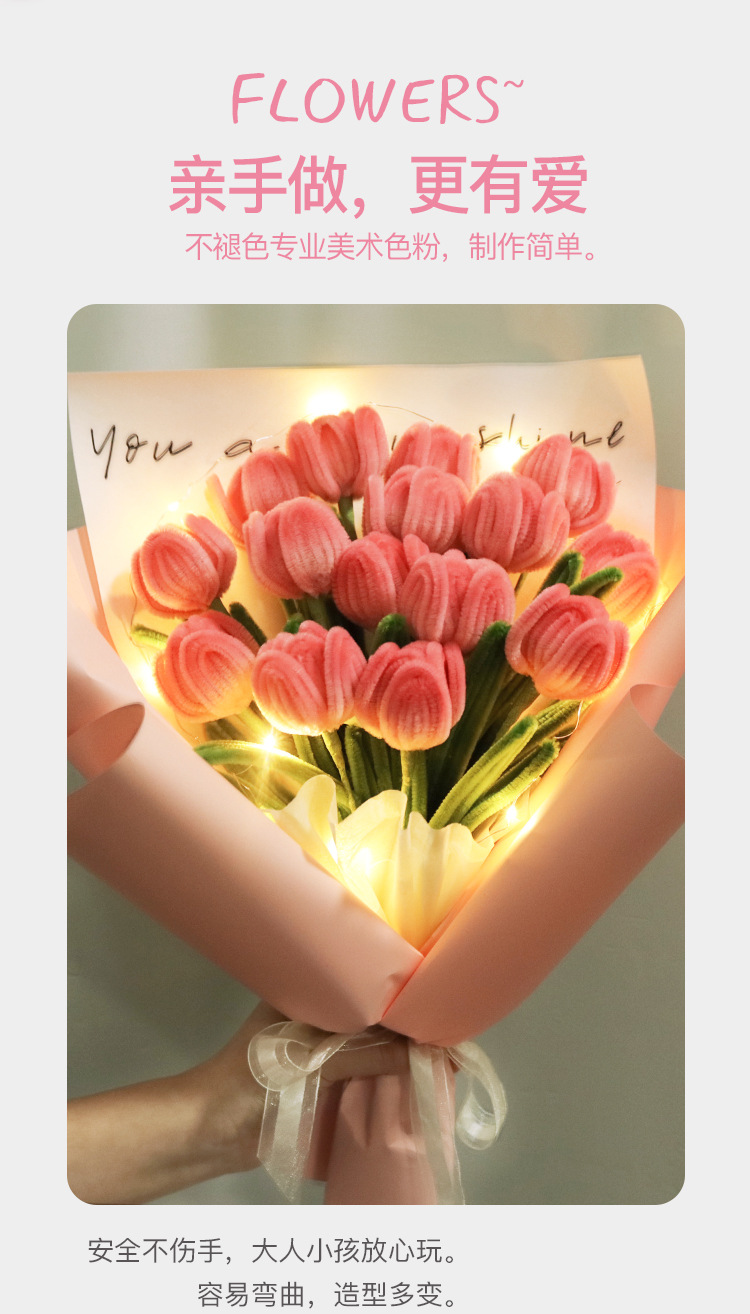 手工DIY扭扭棒花束郁金香自制花材料包编织自己做捧花送女友礼物