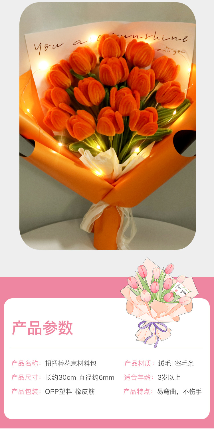 手工DIY扭扭棒花束郁金香自制花材料包编织自己做捧花送女友礼物 投诉