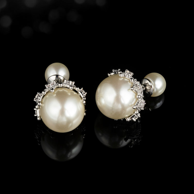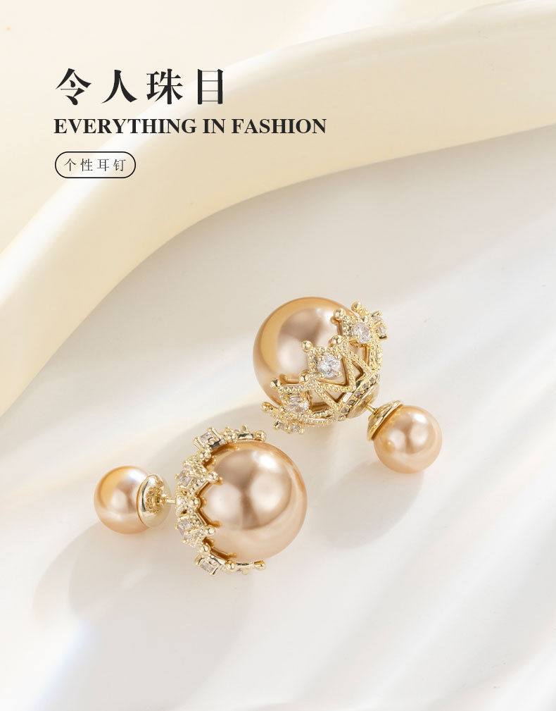 时尚优雅小香风双面珍珠耳钉 小众ins潮个性耳环新款皇冠系列耳饰