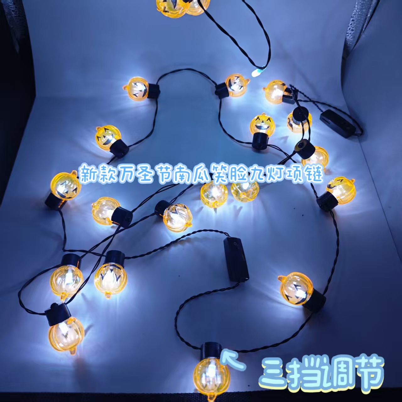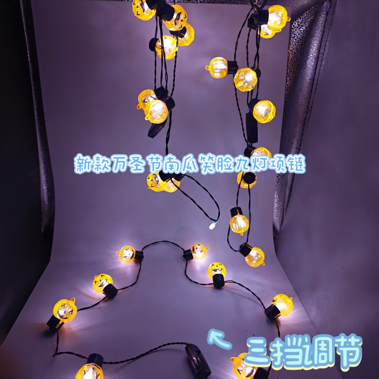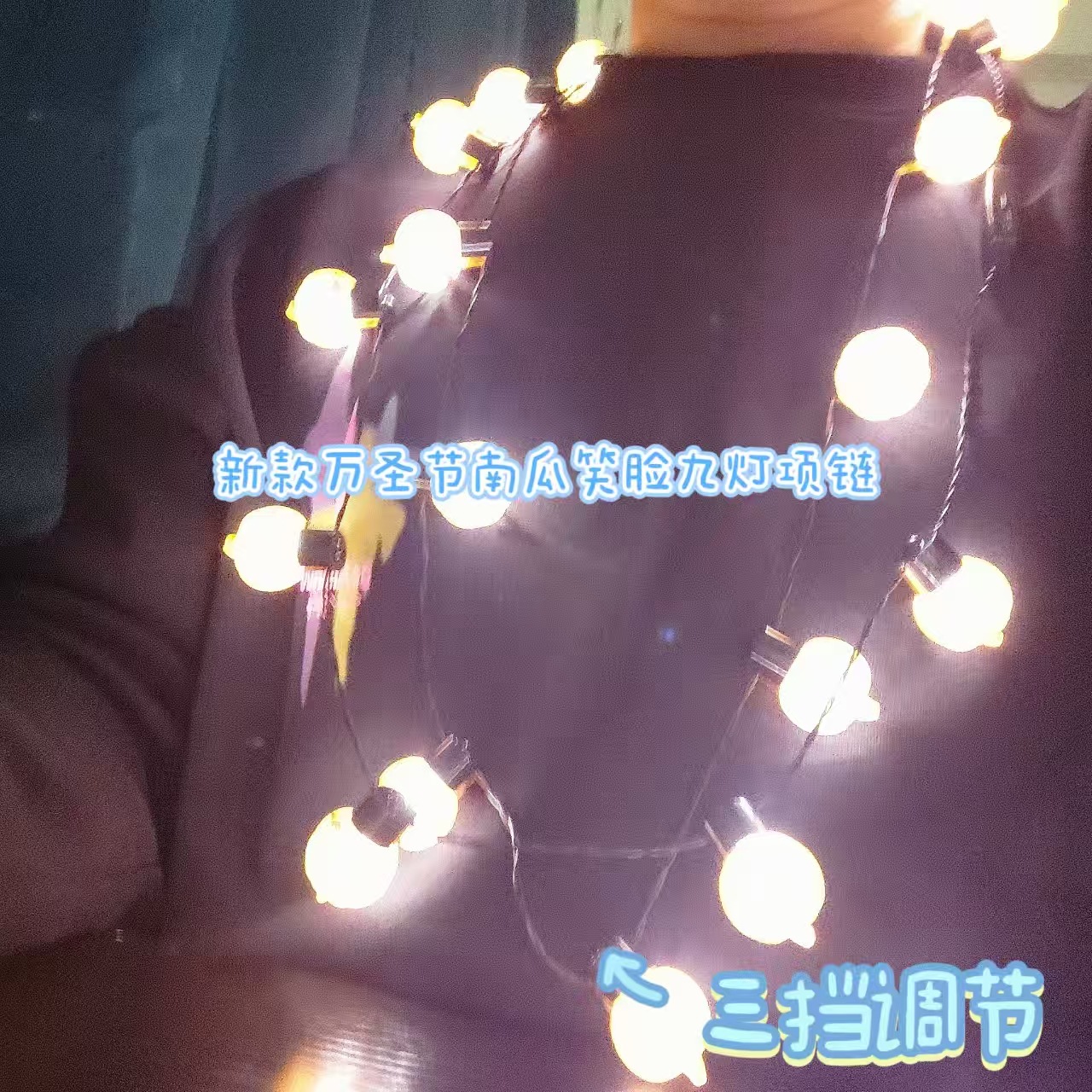 万圣节2025CF新款笑脸南瓜九灯led三档调节发光项链批发 English | 投诉