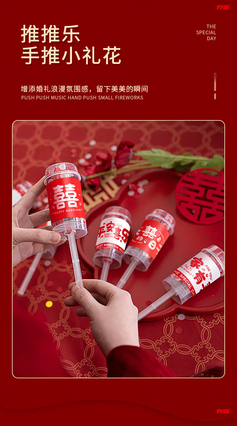 结婚礼花派对推推乐礼炮婚庆用品创意氛围接亲手持迷你氛围喷花筒
